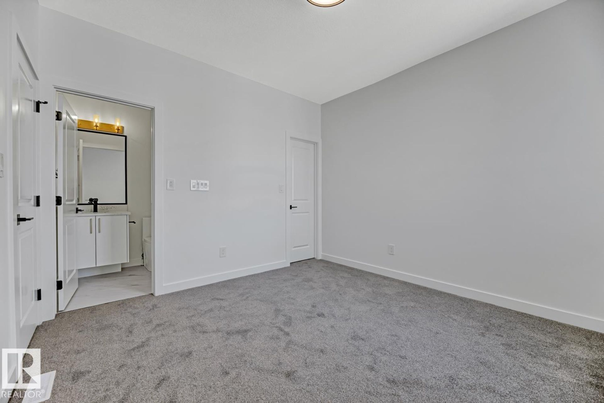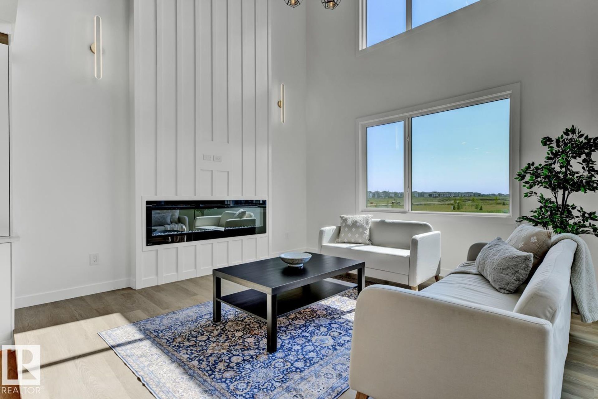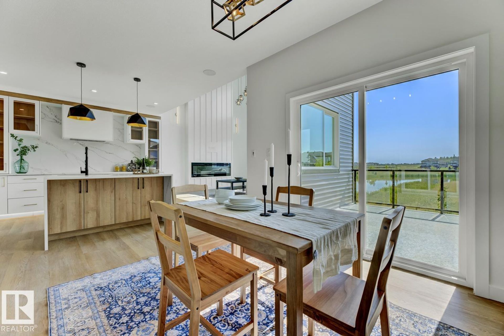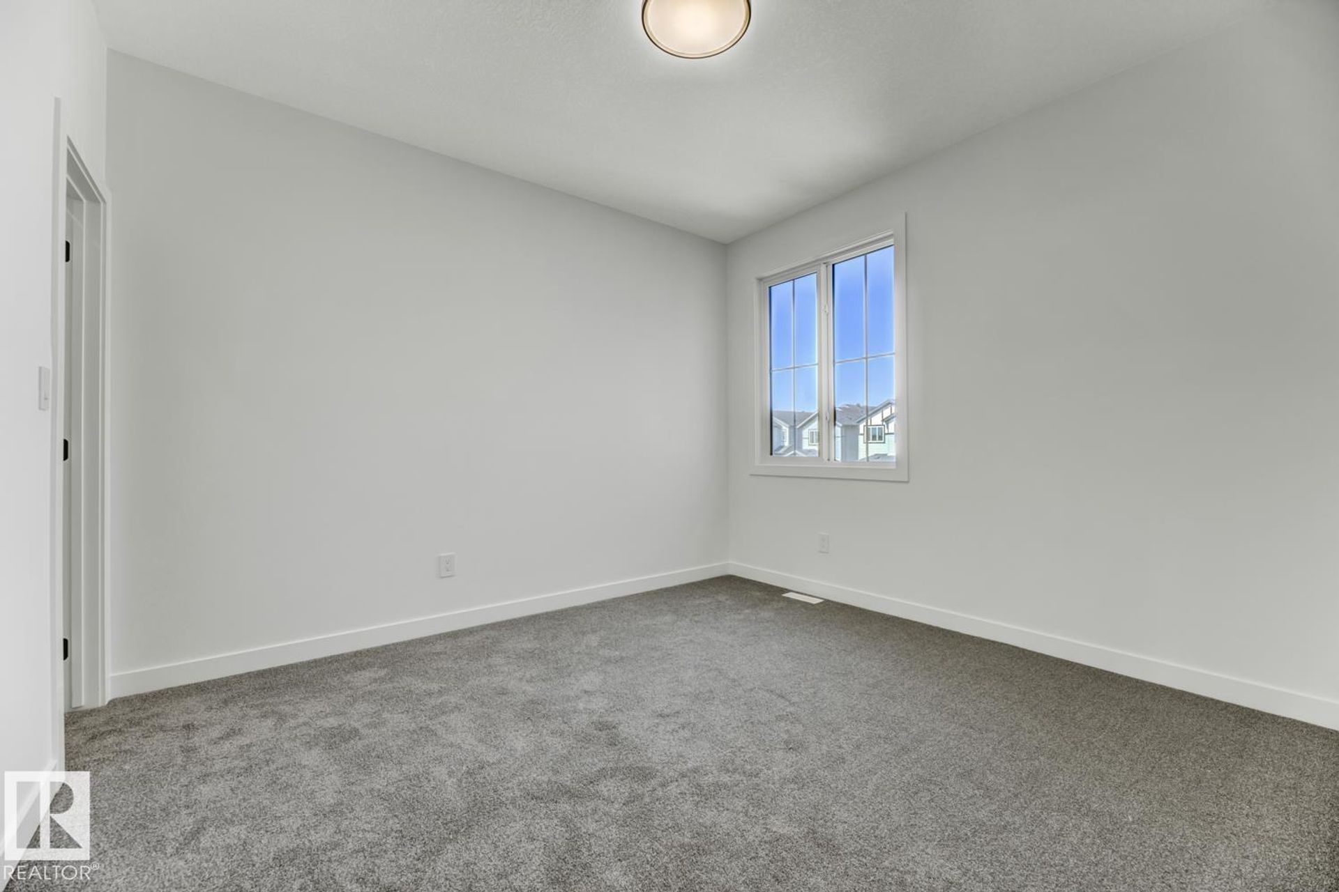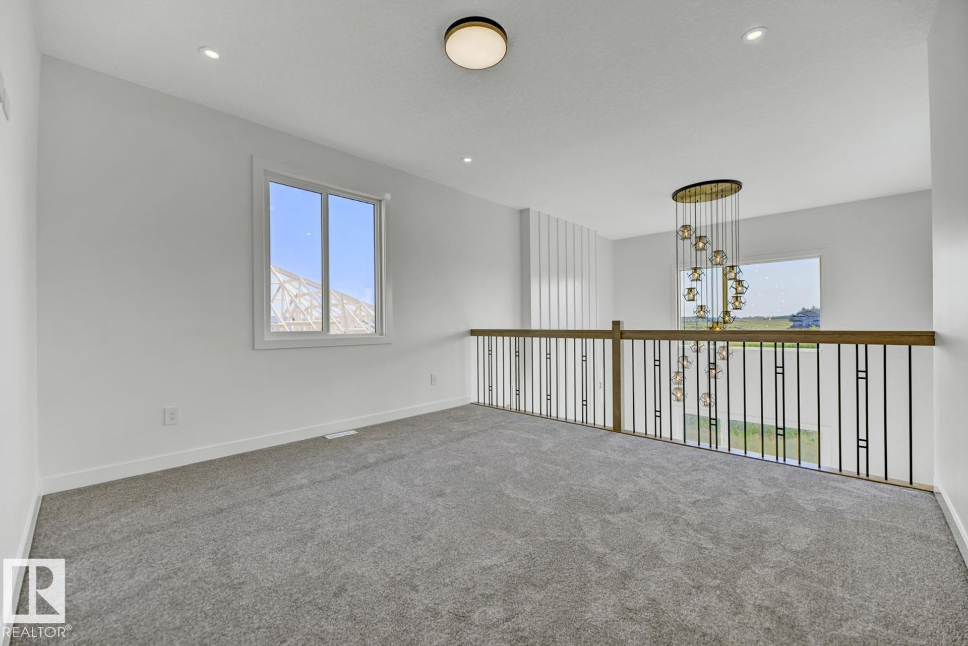 Brand new home backing onto pond & green space! Offering nearly 2500 sq ft above grade, this 4 bedroom, 4 bathroom property is filled with upgrades. The main floor features a spacious foyer, bedroom with full bath, open kitchen with secondary spice kitchen, dining area, and bright living room with floor-to-ceiling fireplace. Upgrades include a waterfall island, marble counters/backsplash & designer lighting. Upstairs offers a bonus room, laundry, and 3 bedrooms including the primary with vaulted ceiling, walk-in closet & luxury 4-pc ensuite. The basement has a side entrance and partial walkout—perfect for income potential, multi-gen living, or extra space. Oversized 500 sq ft garage is painted, drained & ready for heat. Situated on a 30 pocket lot with glass-railed deck, landscaped yard & stunning pond views. Close to schools, trails & parks.