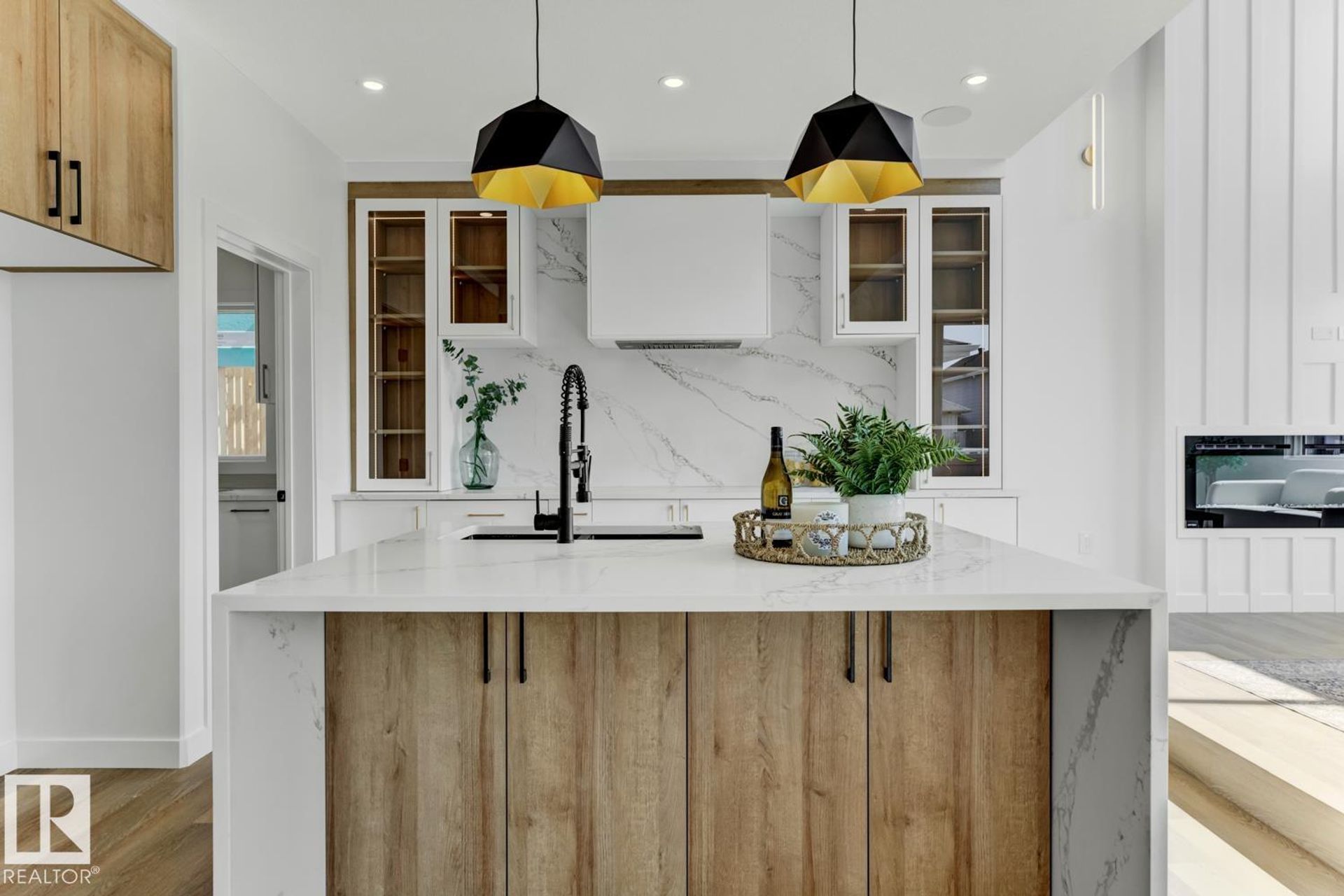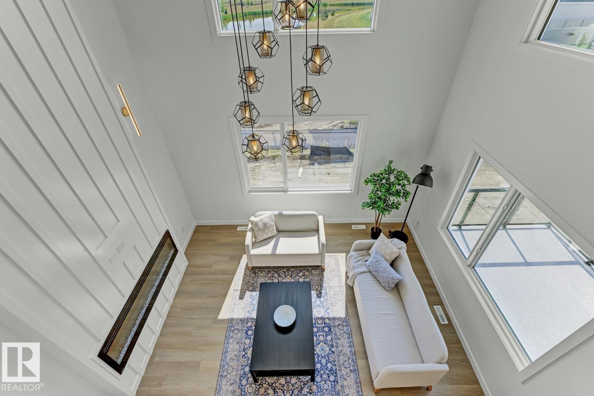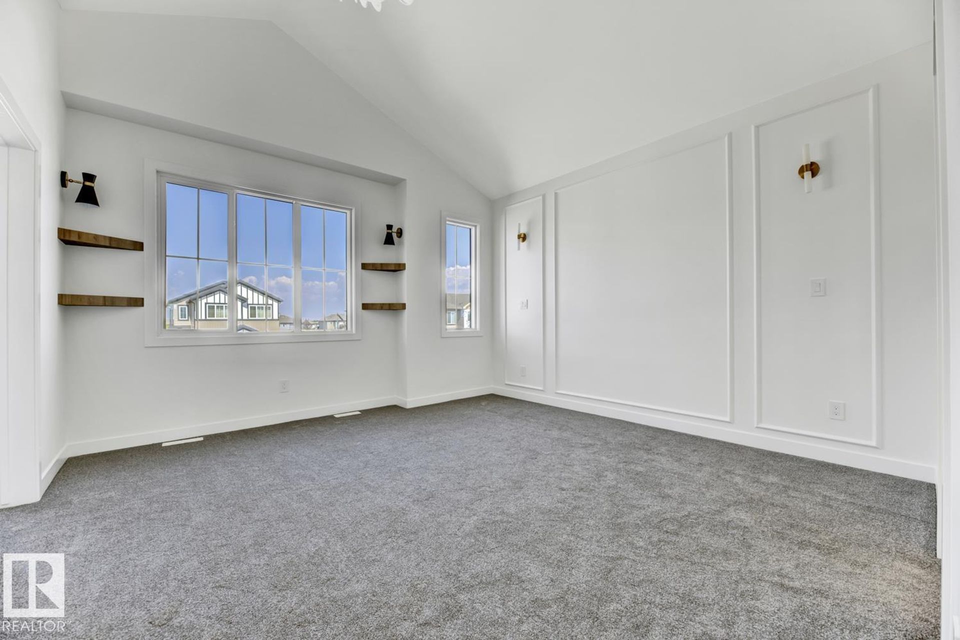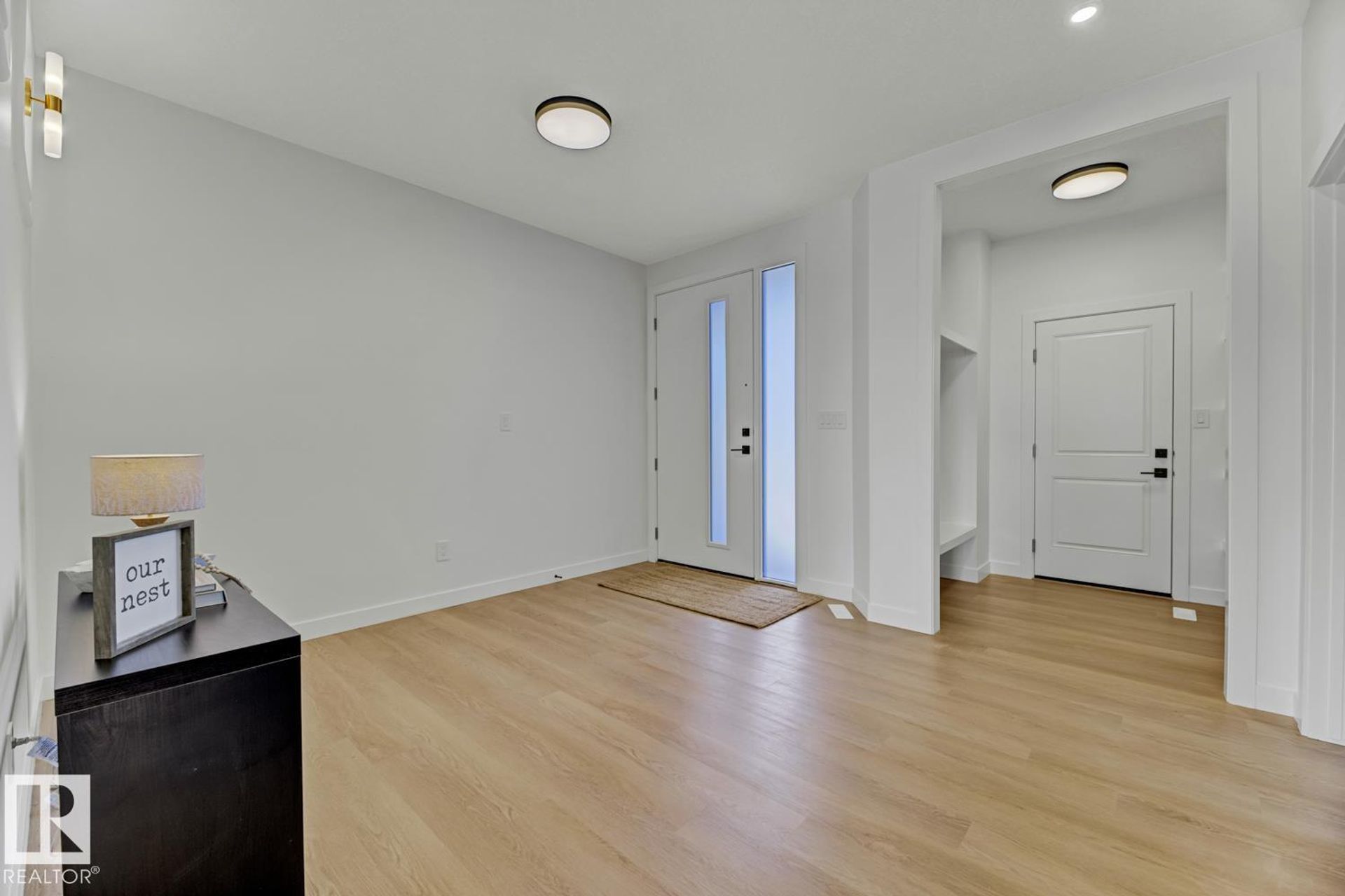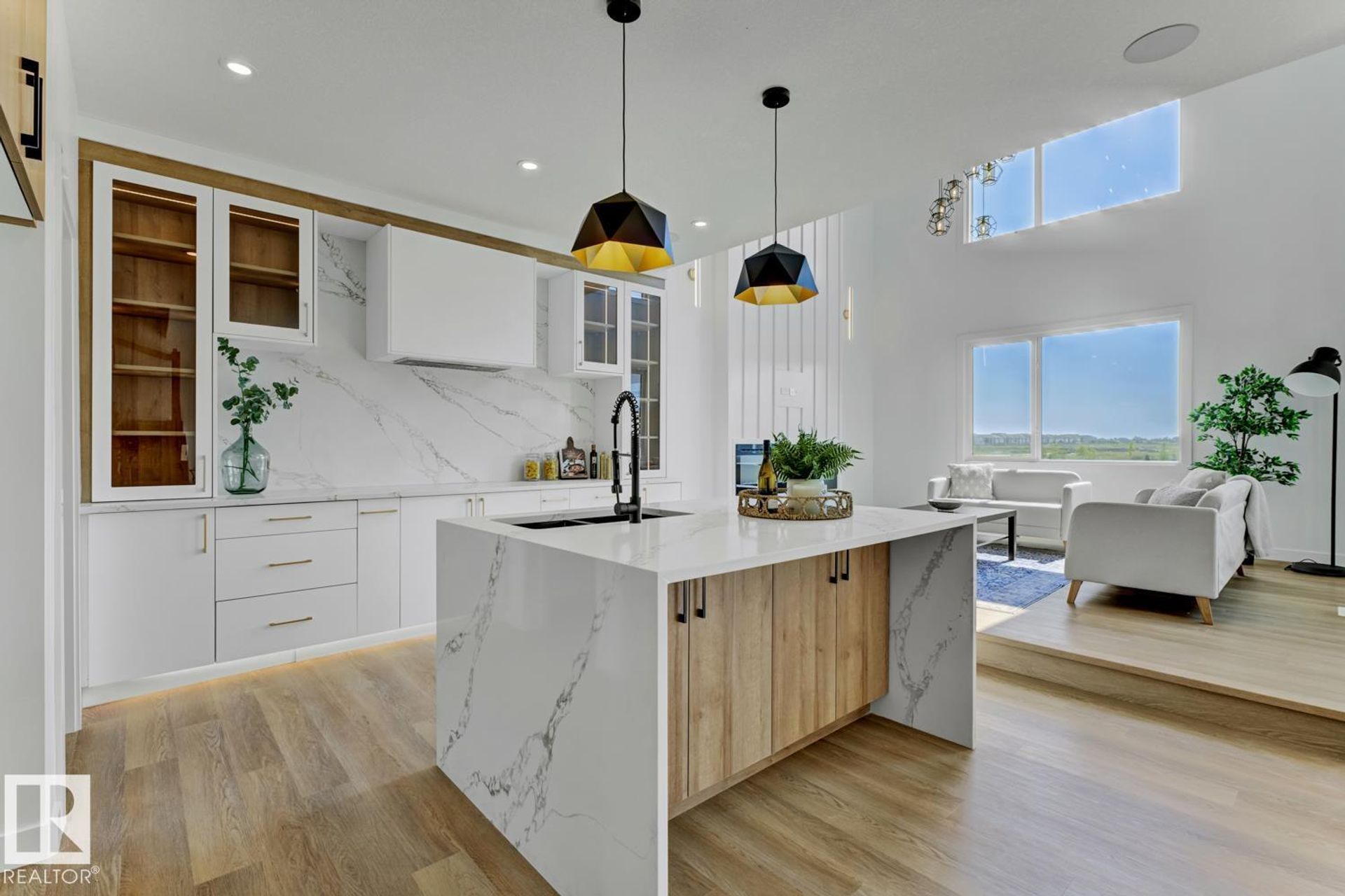 Brand new home backing onto pond & green space! Offering nearly 2500 sq ft above grade, this 4 bedroom, 4 bathroom property is filled with upgrades. The main floor features a spacious foyer, bedroom with full bath, open kitchen with secondary spice kitchen, dining area, and bright living room with floor-to-ceiling fireplace. Upgrades include a waterfall island, marble counters/backsplash & designer lighting. Upstairs offers a bonus room, laundry, and 3 bedrooms including the primary with vaulted ceiling, walk-in closet & luxury 4-pc ensuite. The basement has a side entrance and partial walkout—perfect for income potential, multi-gen living, or extra space. Oversized 500 sq ft garage is painted, drained & ready for heat. Situated on a 30 pocket lot with glass-railed deck, landscaped yard & stunning pond views. Close to schools, trails & parks.