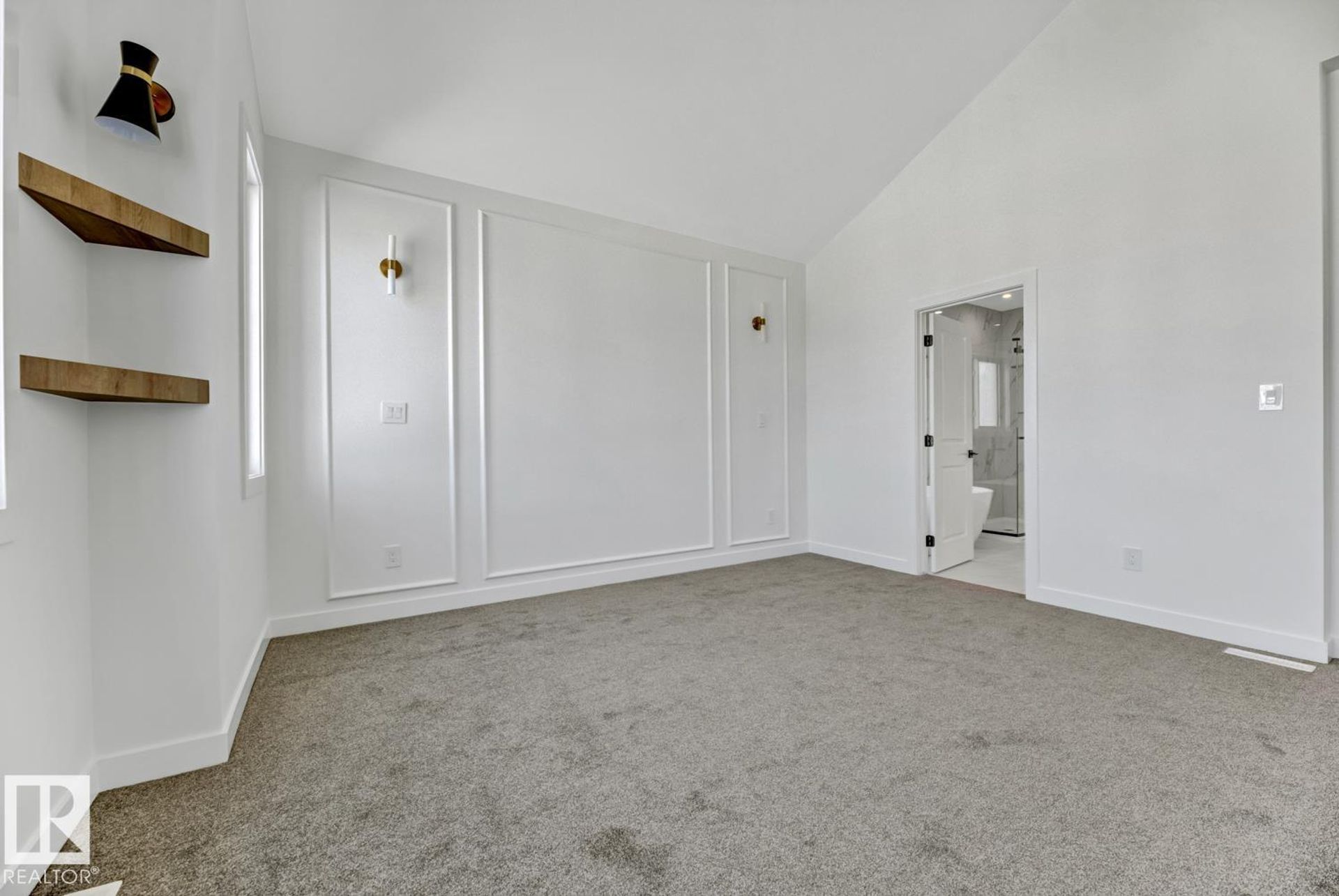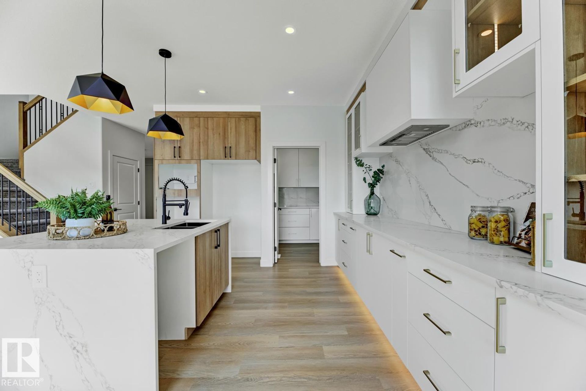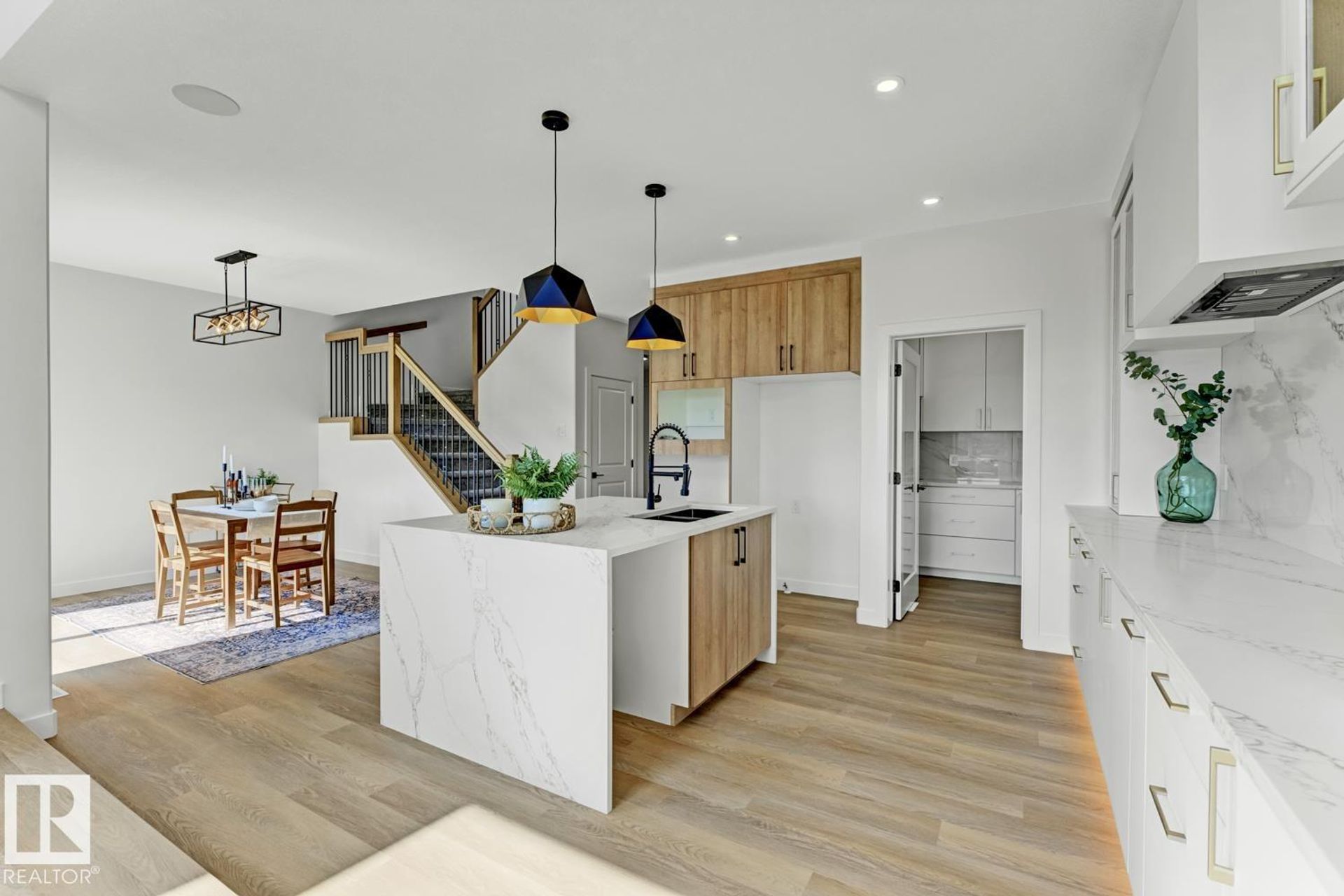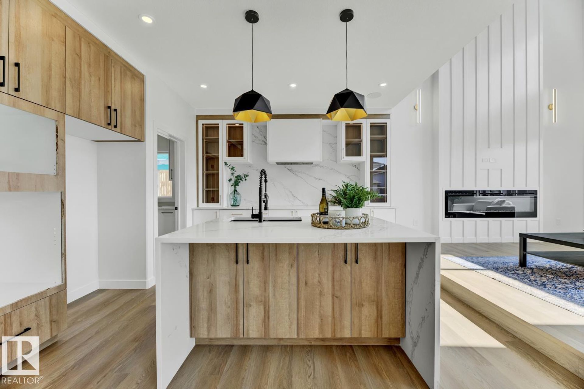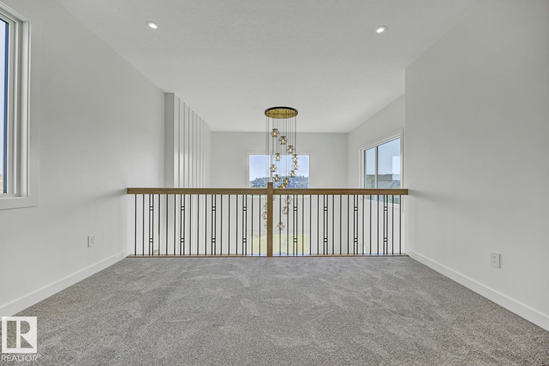 Brand new home backing onto pond & green space! Offering nearly 2500 sq ft above grade, this 4 bedroom, 4 bathroom property is filled with upgrades. The main floor features a spacious foyer, bedroom with full bath, open kitchen with secondary spice kitchen, dining area, and bright living room with floor-to-ceiling fireplace. Upgrades include a waterfall island, marble counters/backsplash & designer lighting. Upstairs offers a bonus room, laundry, and 3 bedrooms including the primary with vaulted ceiling, walk-in closet & luxury 4-pc ensuite. The basement has a side entrance and partial walkout—perfect for income potential, multi-gen living, or extra space. Oversized 500 sq ft garage is painted, drained & ready for heat. Situated on a 30 pocket lot with glass-railed deck, landscaped yard & stunning pond views. Close to schools, trails & parks.
