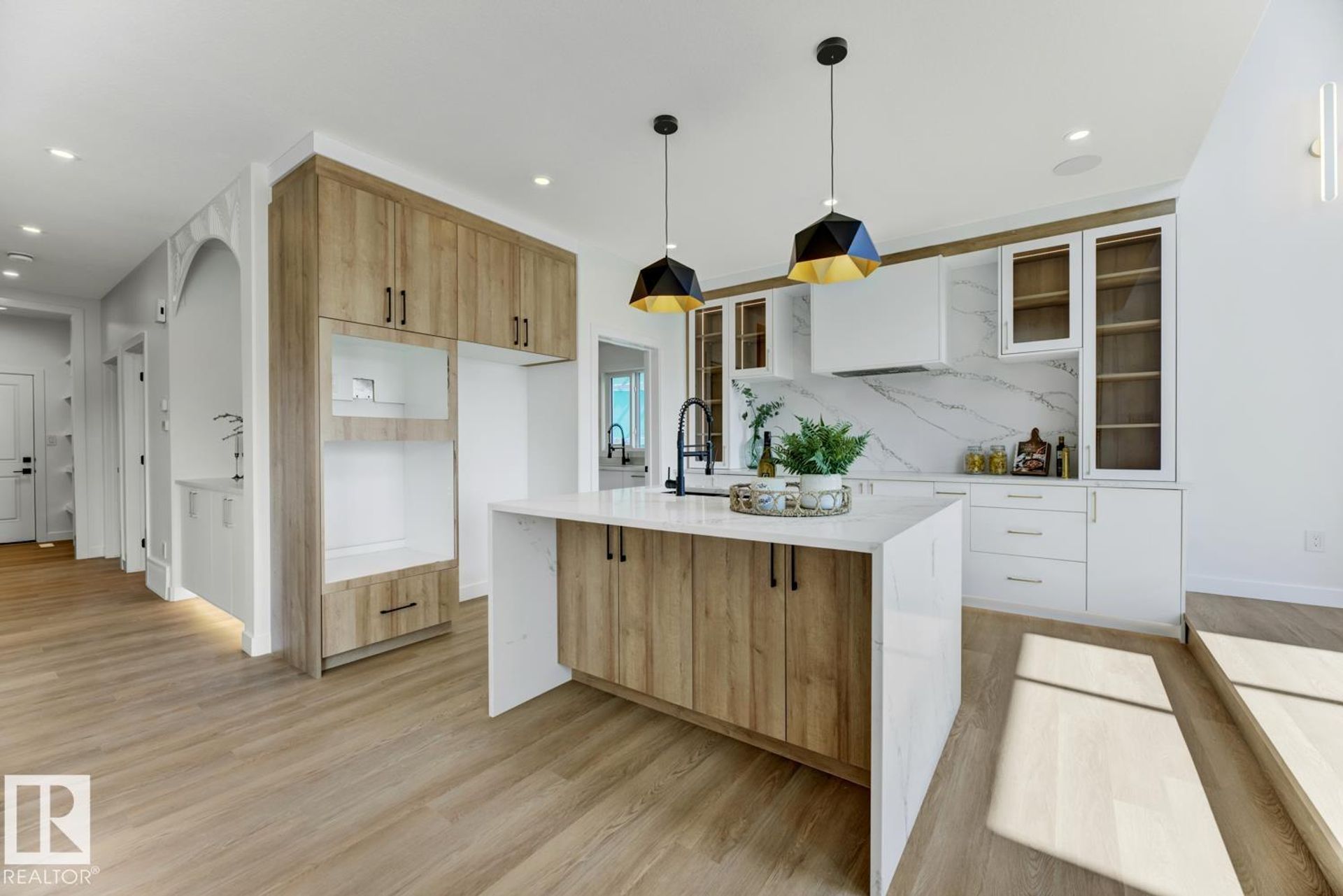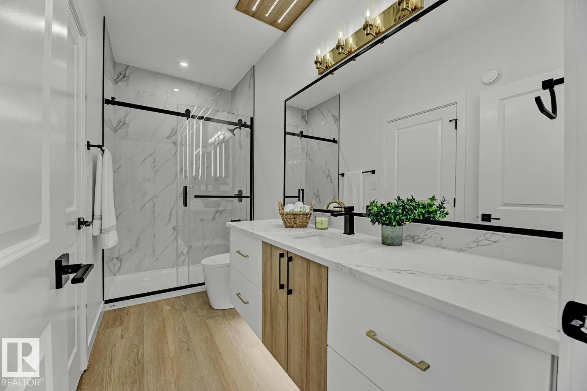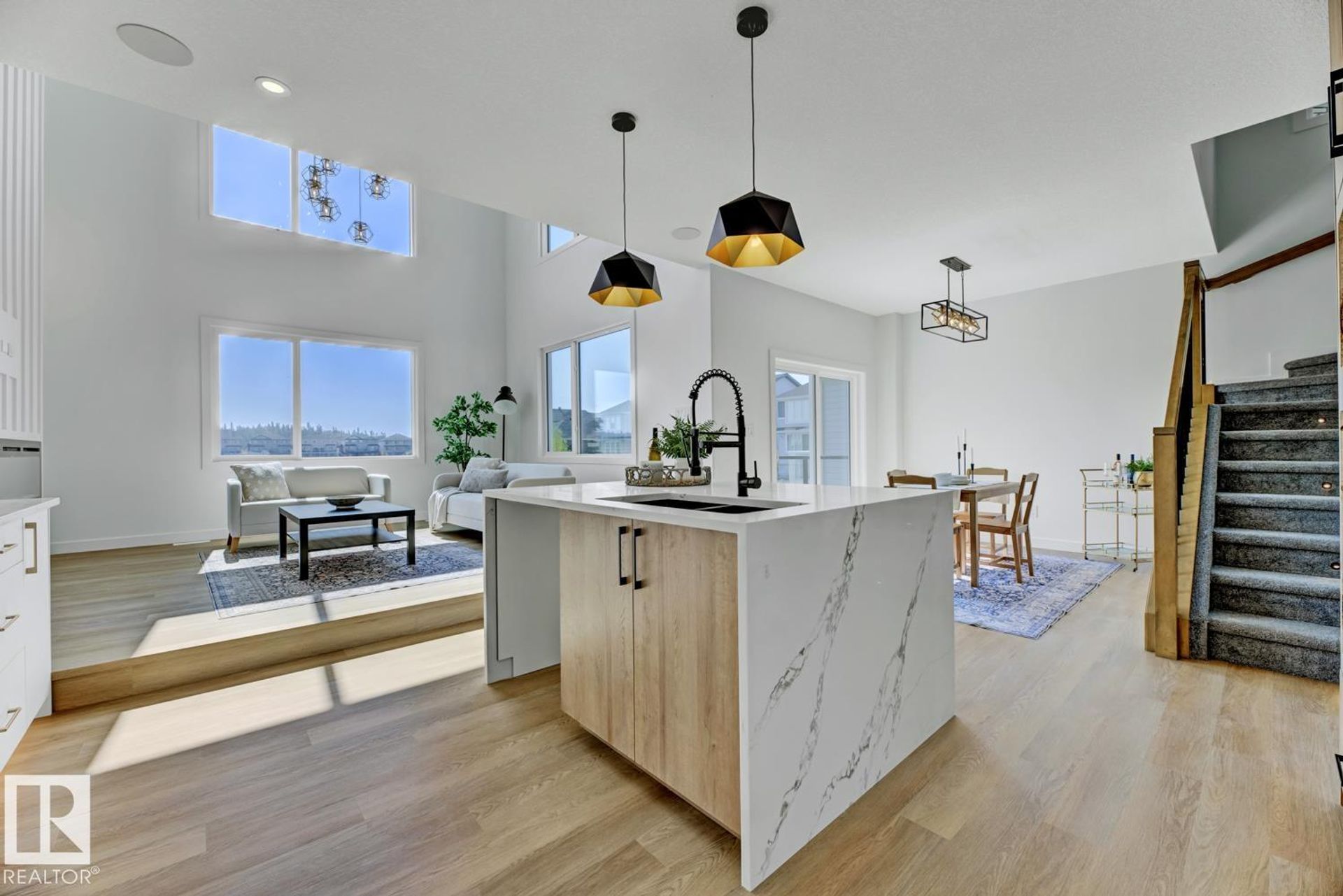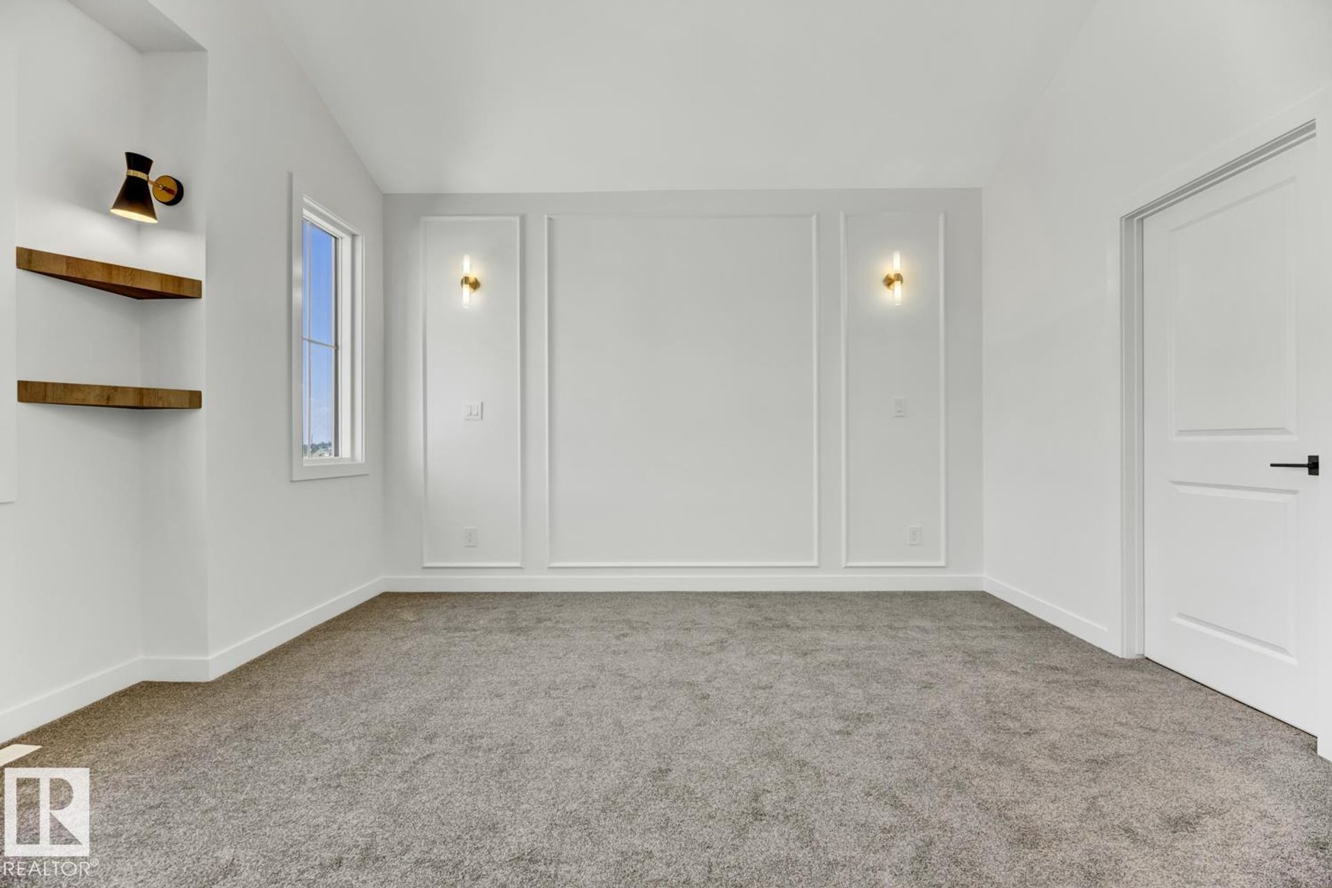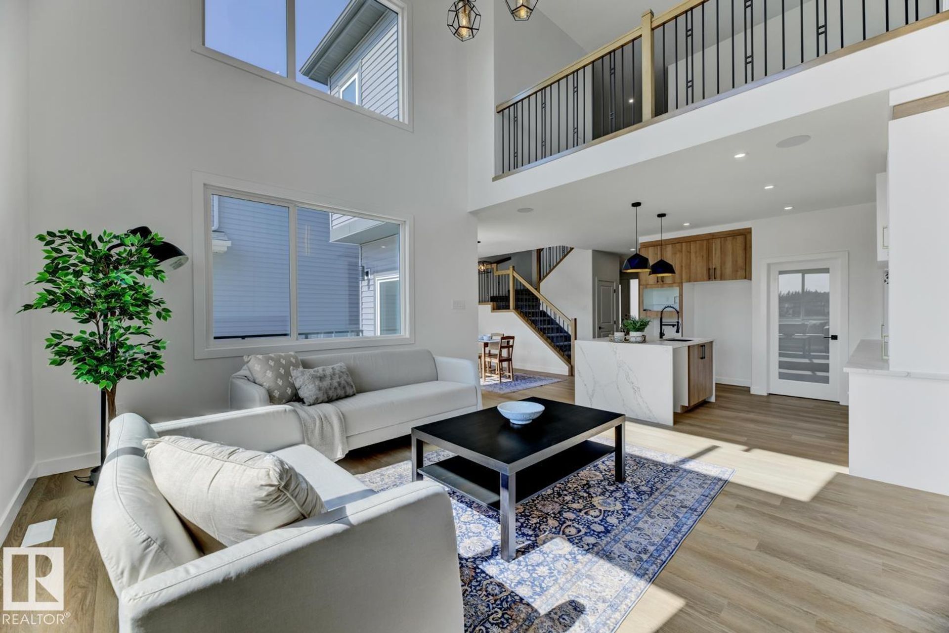 Brand new home backing onto pond & green space! Offering nearly 2500 sq ft above grade, this 4 bedroom, 4 bathroom property is filled with upgrades. The main floor features a spacious foyer, bedroom with full bath, open kitchen with secondary spice kitchen, dining area, and bright living room with floor-to-ceiling fireplace. Upgrades include a waterfall island, marble counters/backsplash & designer lighting. Upstairs offers a bonus room, laundry, and 3 bedrooms including the primary with vaulted ceiling, walk-in closet & luxury 4-pc ensuite. The basement has a side entrance and partial walkout—perfect for income potential, multi-gen living, or extra space. Oversized 500 sq ft garage is painted, drained & ready for heat. Situated on a 30 pocket lot with glass-railed deck, landscaped yard & stunning pond views. Close to schools, trails & parks.