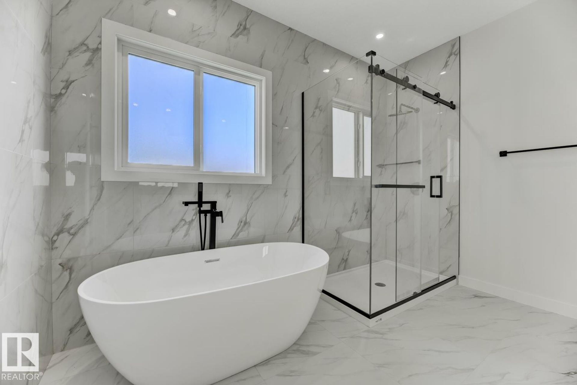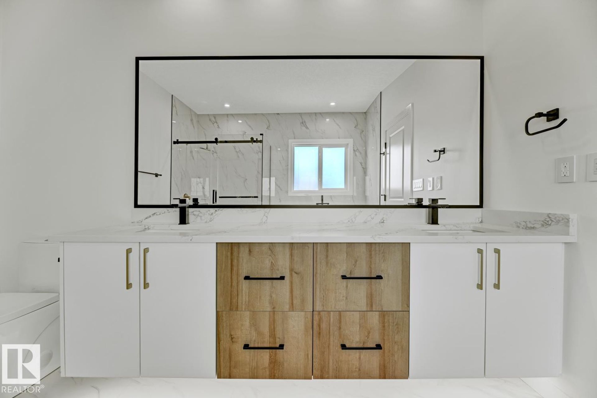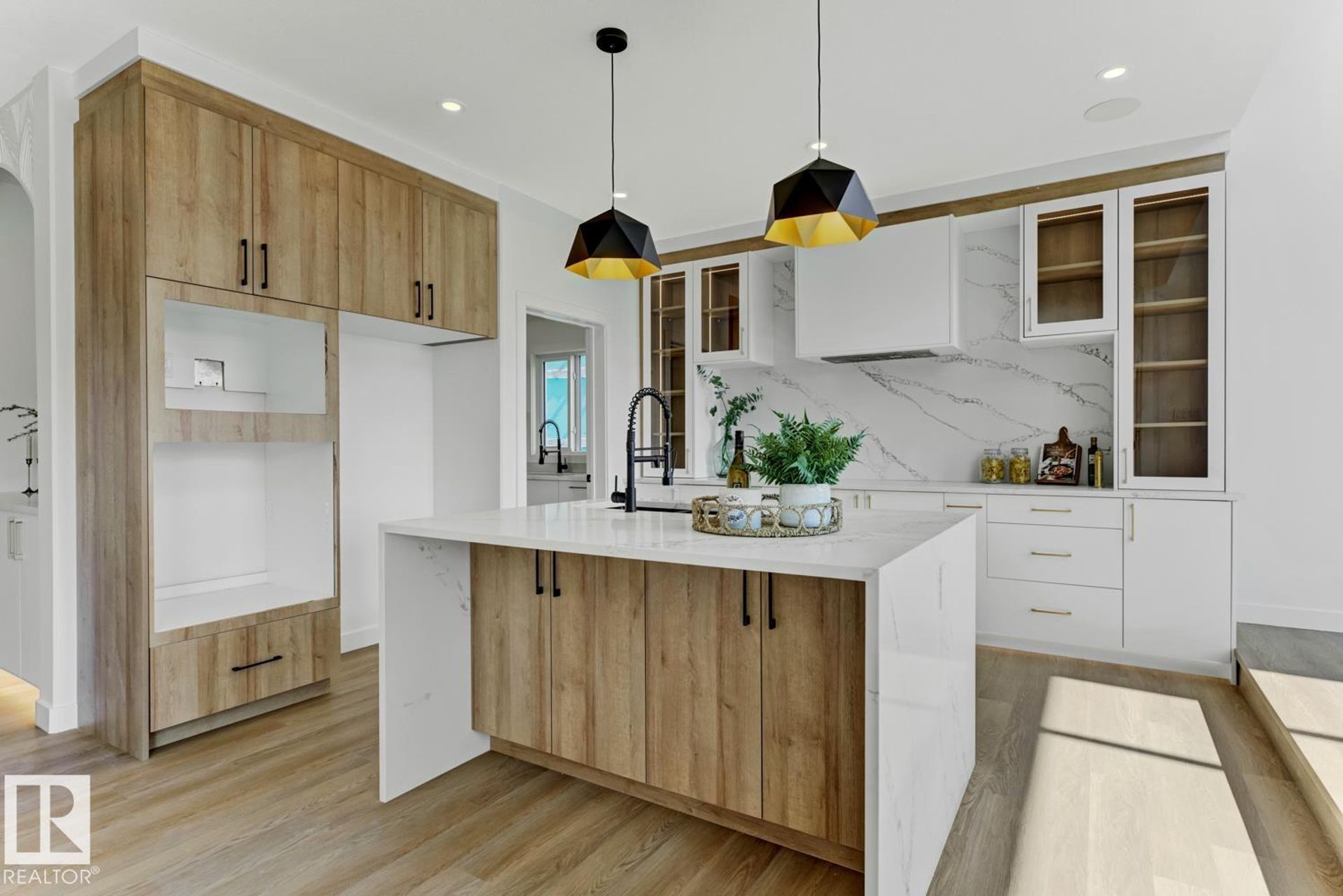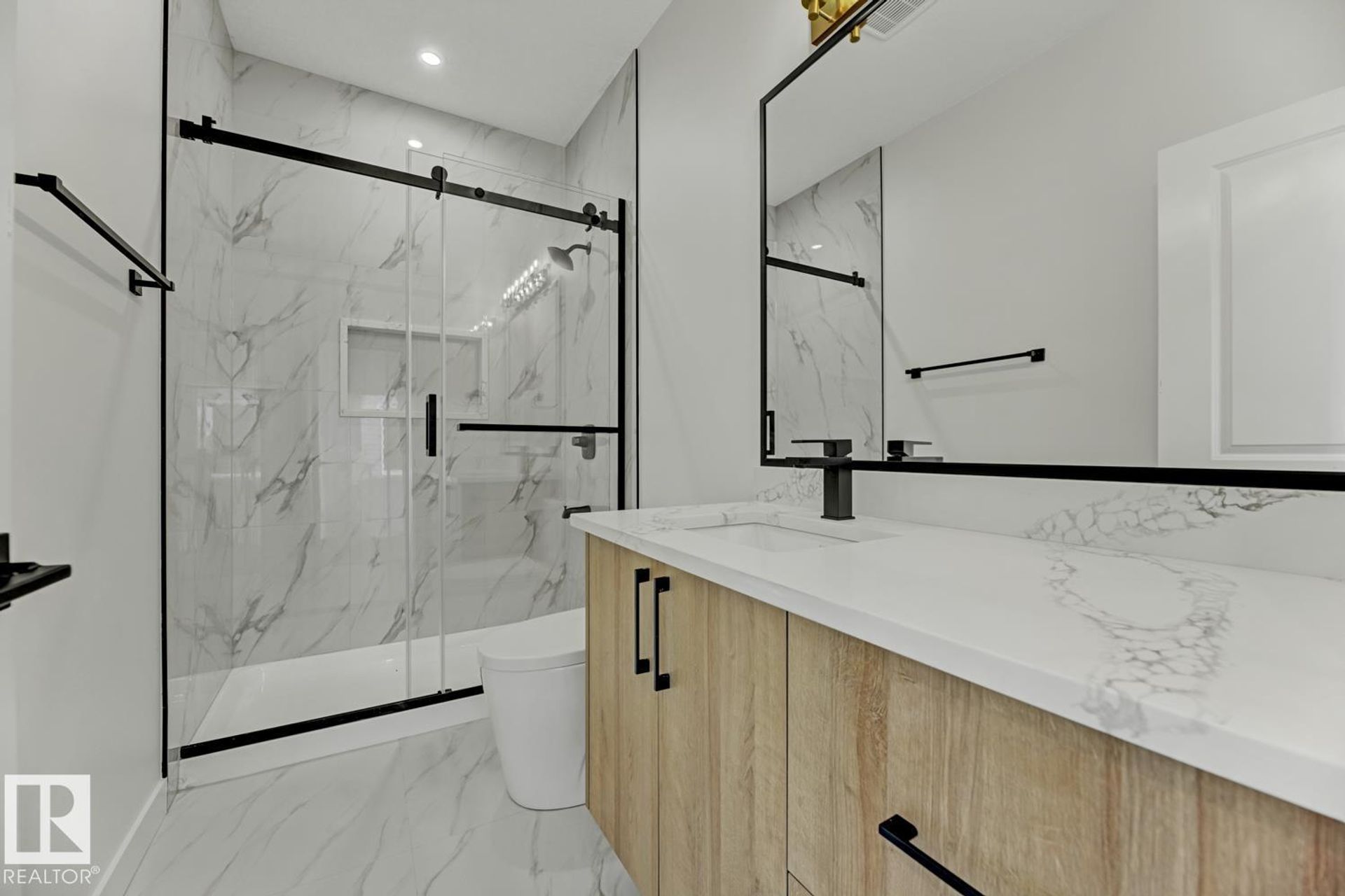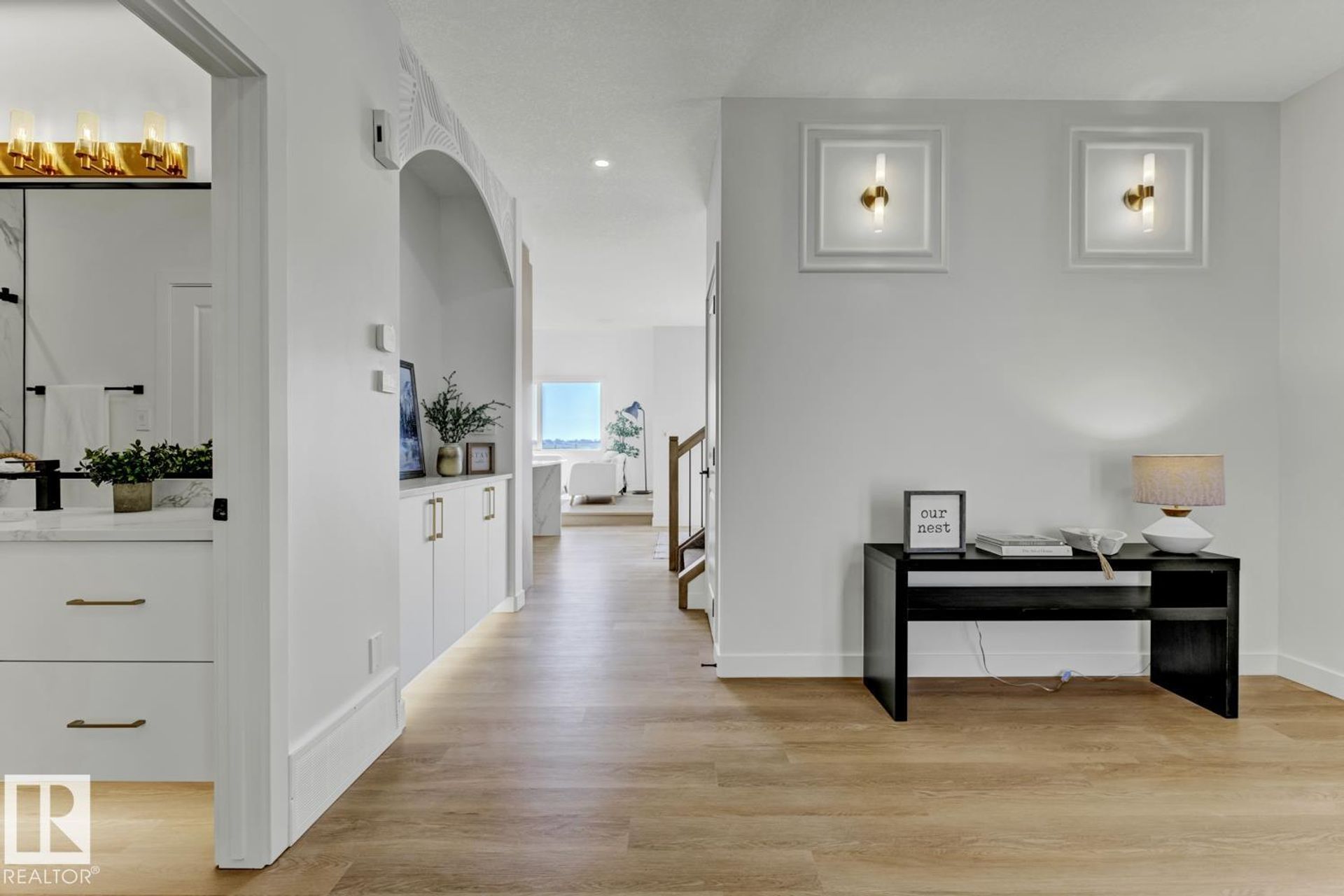 Brand new home backing onto pond & green space! Offering nearly 2500 sq ft above grade, this 4 bedroom, 4 bathroom property is filled with upgrades. The main floor features a spacious foyer, bedroom with full bath, open kitchen with secondary spice kitchen, dining area, and bright living room with floor-to-ceiling fireplace. Upgrades include a waterfall island, marble counters/backsplash & designer lighting. Upstairs offers a bonus room, laundry, and 3 bedrooms including the primary with vaulted ceiling, walk-in closet & luxury 4-pc ensuite. The basement has a side entrance and partial walkout—perfect for income potential, multi-gen living, or extra space. Oversized 500 sq ft garage is painted, drained & ready for heat. Situated on a 30 pocket lot with glass-railed deck, landscaped yard & stunning pond views. Close to schools, trails & parks.