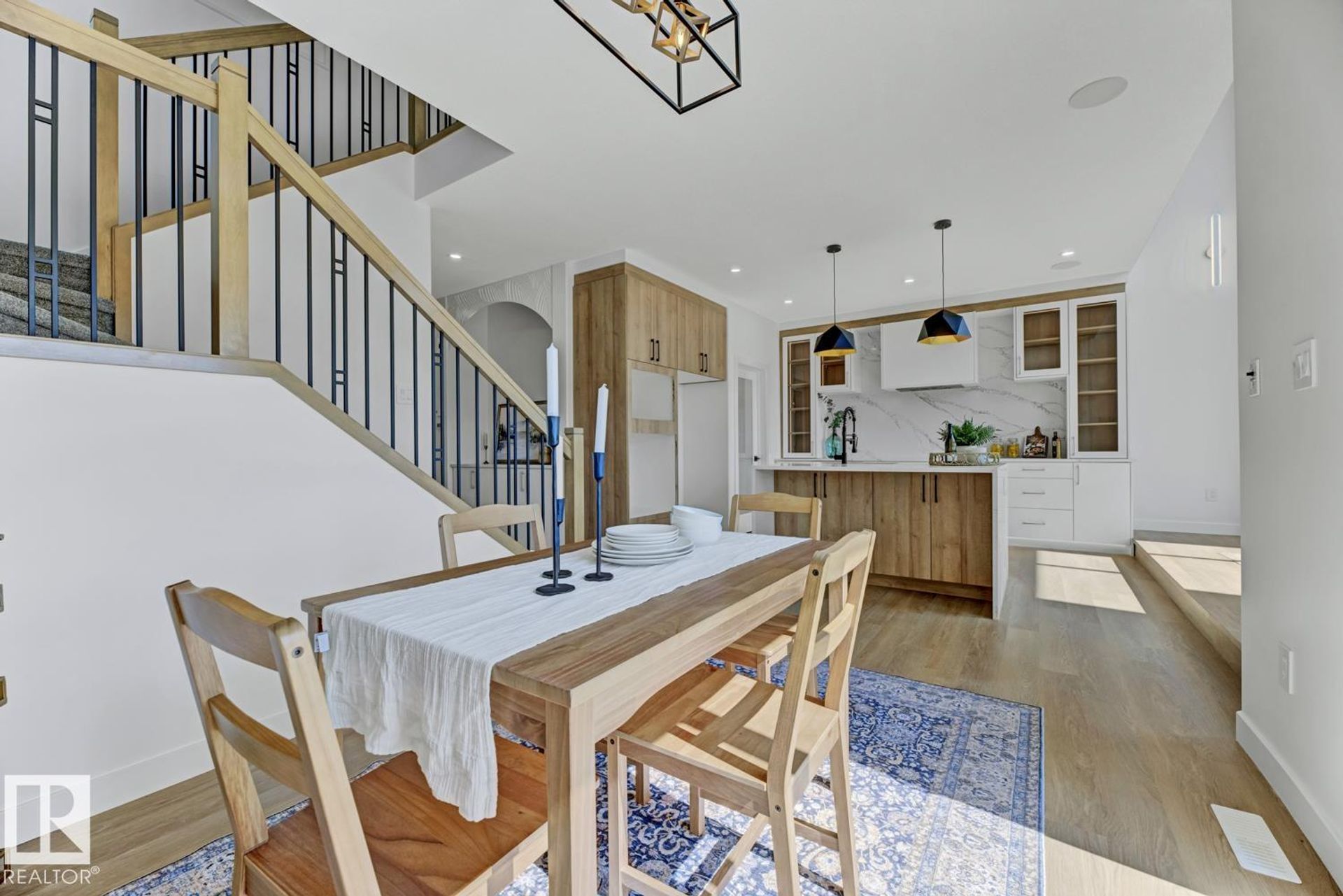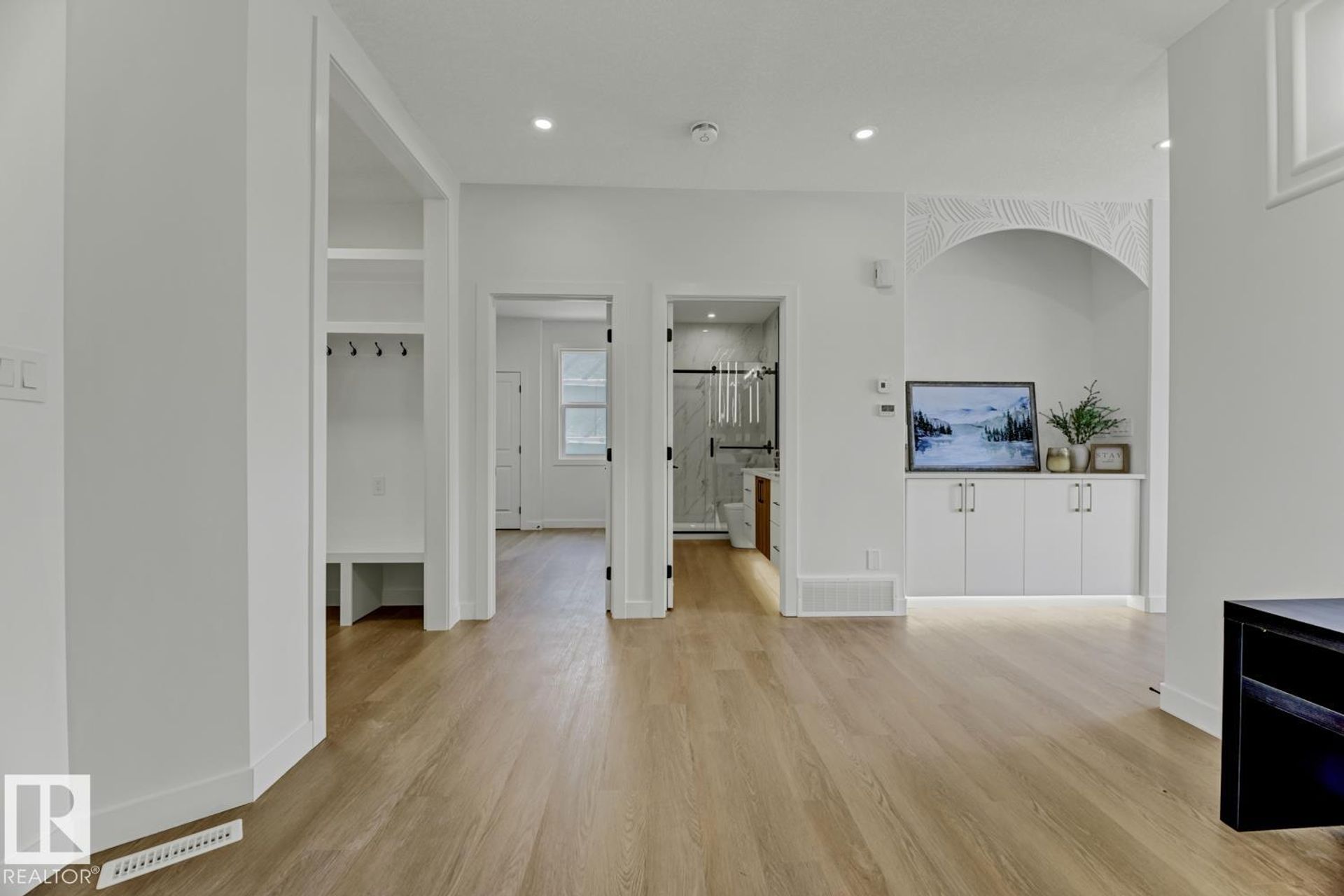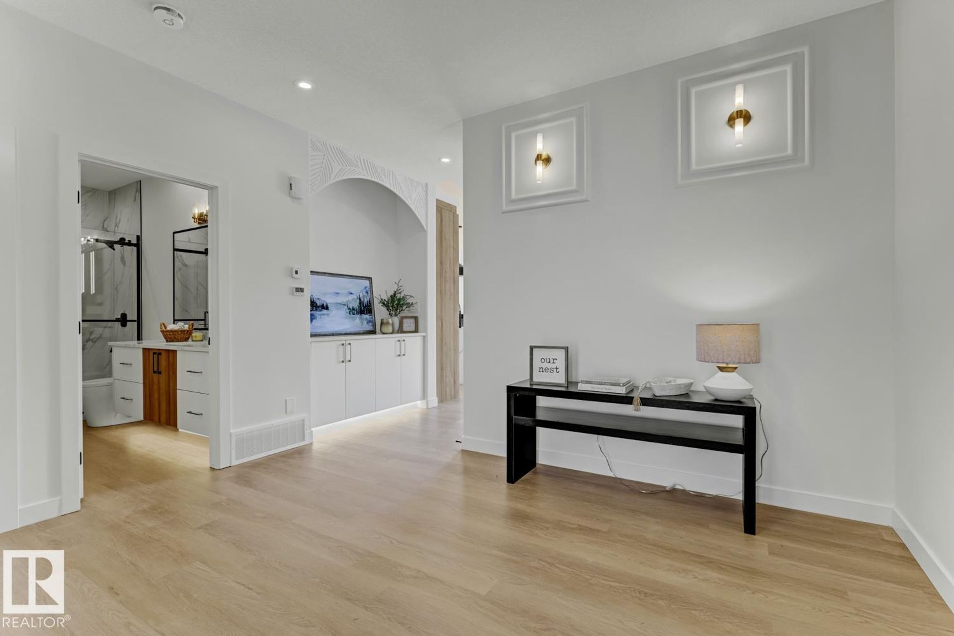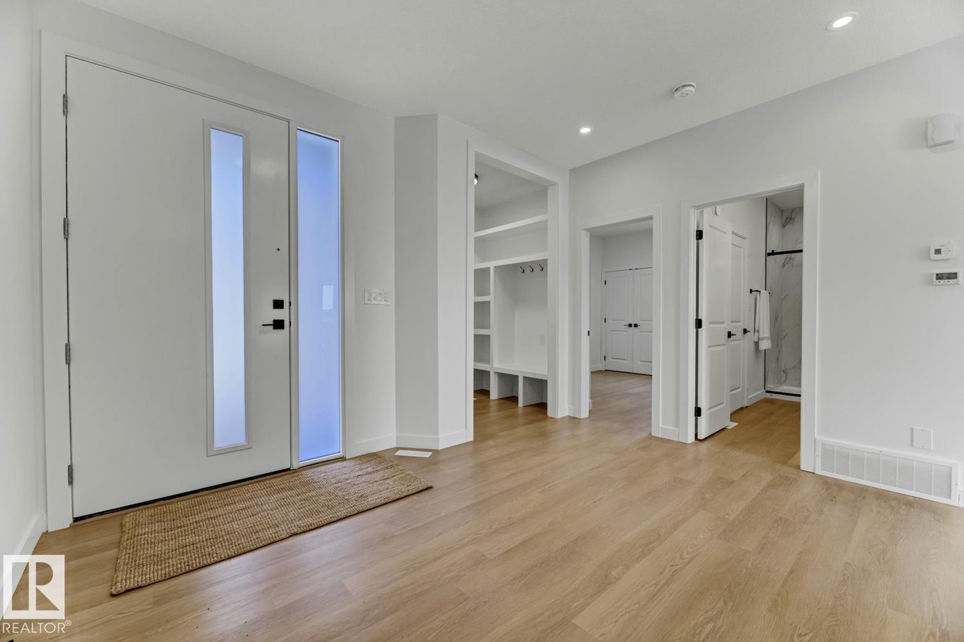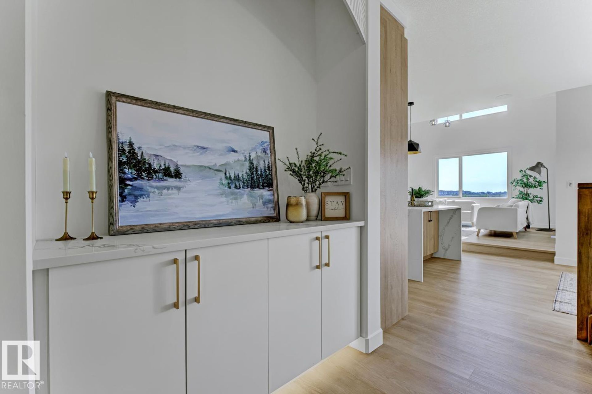 Brand new home backing onto pond & green space! Offering nearly 2500 sq ft above grade, this 4 bedroom, 4 bathroom property is filled with upgrades. The main floor features a spacious foyer, bedroom with full bath, open kitchen with secondary spice kitchen, dining area, and bright living room with floor-to-ceiling fireplace. Upgrades include a waterfall island, marble counters/backsplash & designer lighting. Upstairs offers a bonus room, laundry, and 3 bedrooms including the primary with vaulted ceiling, walk-in closet & luxury 4-pc ensuite. The basement has a side entrance and partial walkout—perfect for income potential, multi-gen living, or extra space. Oversized 500 sq ft garage is painted, drained & ready for heat. Situated on a 30 pocket lot with glass-railed deck, landscaped yard & stunning pond views. Close to schools, trails & parks.