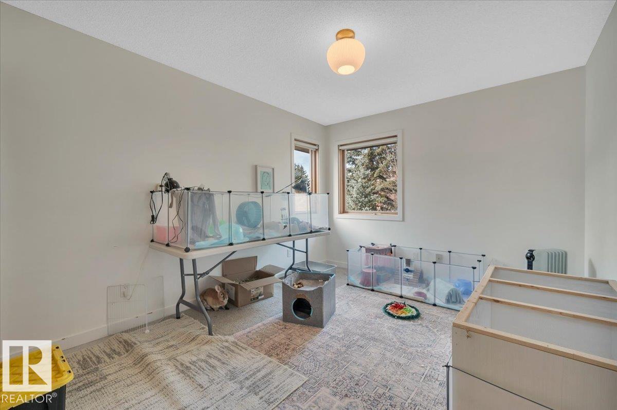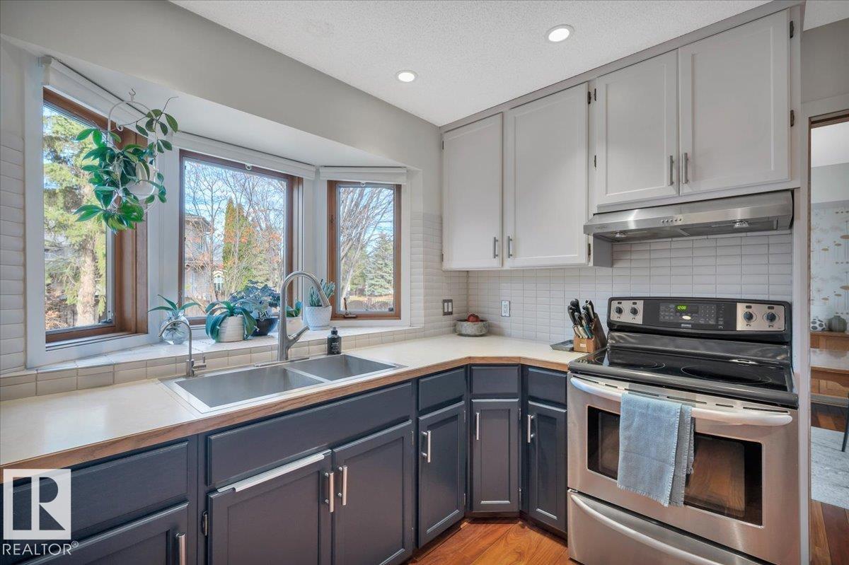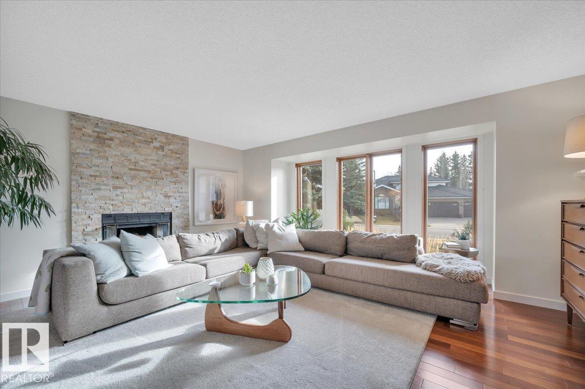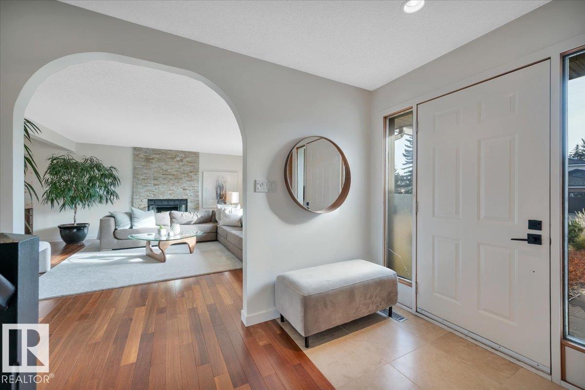 Welcome to Terwillegar Park Estates! A fantastic family friendly neighbourhood by the river valley where you can enjoy wilderness walks in summer & x-country skiing in winter. Huge 8,939 sq ft lot! Great location just steps from a park with state-of-the-art playground & community outdoor skating rink, perfect for young families. This FOUR bedroom two storey has had quality renovations in recent years. Beautiful Brazilian teak hardwood floors throughout most of the house including primary bedroom, updated bathrooms, modern lighting & new carpets on the stairs & three of the bedrooms which also have bright corner windows allowing plenty of sunshine. Wood burning fireplace in the living room & large dining room. Bright kitchen with S/S appliances & patio doors off the breakfast nook onto deck which overlooks the big backyard with mature trees. Cozy family room with wood burning fireplace, den or 5th bedroom, 2 pce bath & laundry room with sink & direct access to the double garage. You'll LOVE living here!