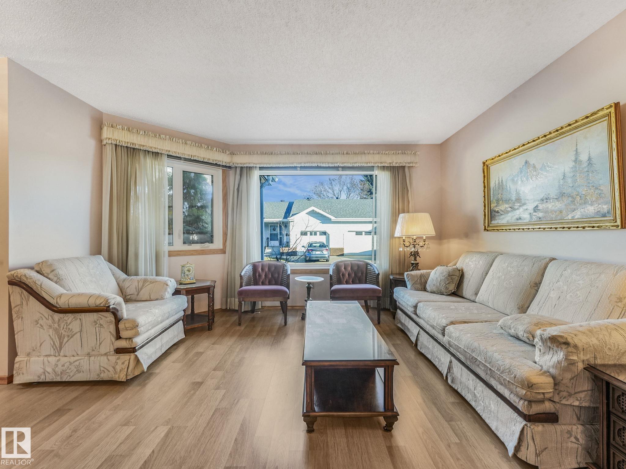 Welcome to Horizon Village, a well-maintained adult living community featuring recent updates including shingles, vinyl decks, & windows. This spacious 3-bed, 2-bath residence offers a single attached garage & a finished basement. The large living room boasts updated laminate flooring & bright, east-facing windows. The adjacent kitchen includes a pantry & sliding glass doors that lead to a large west-facing private deck. The primary bed is spacious w/ a massive walk-in closet, complemented by a 2nd bed, main-level laundry, & direct access to the attached garage. The basement offers an additional bed, a 3-pce bath, a sizable family room, & ample storage. Enjoy the amenities building with games nights, pool tables, shuffleboard, & a fully equipped kitchen. Ideally located with easy access to grocery stores, Callingwood Shopping Centre and Farmers Market, WEM, medical facilities, & dining options. Condo fees include landscaping, snow removal, and cable TV. Perfect for someone seeking comfort and convenience!
