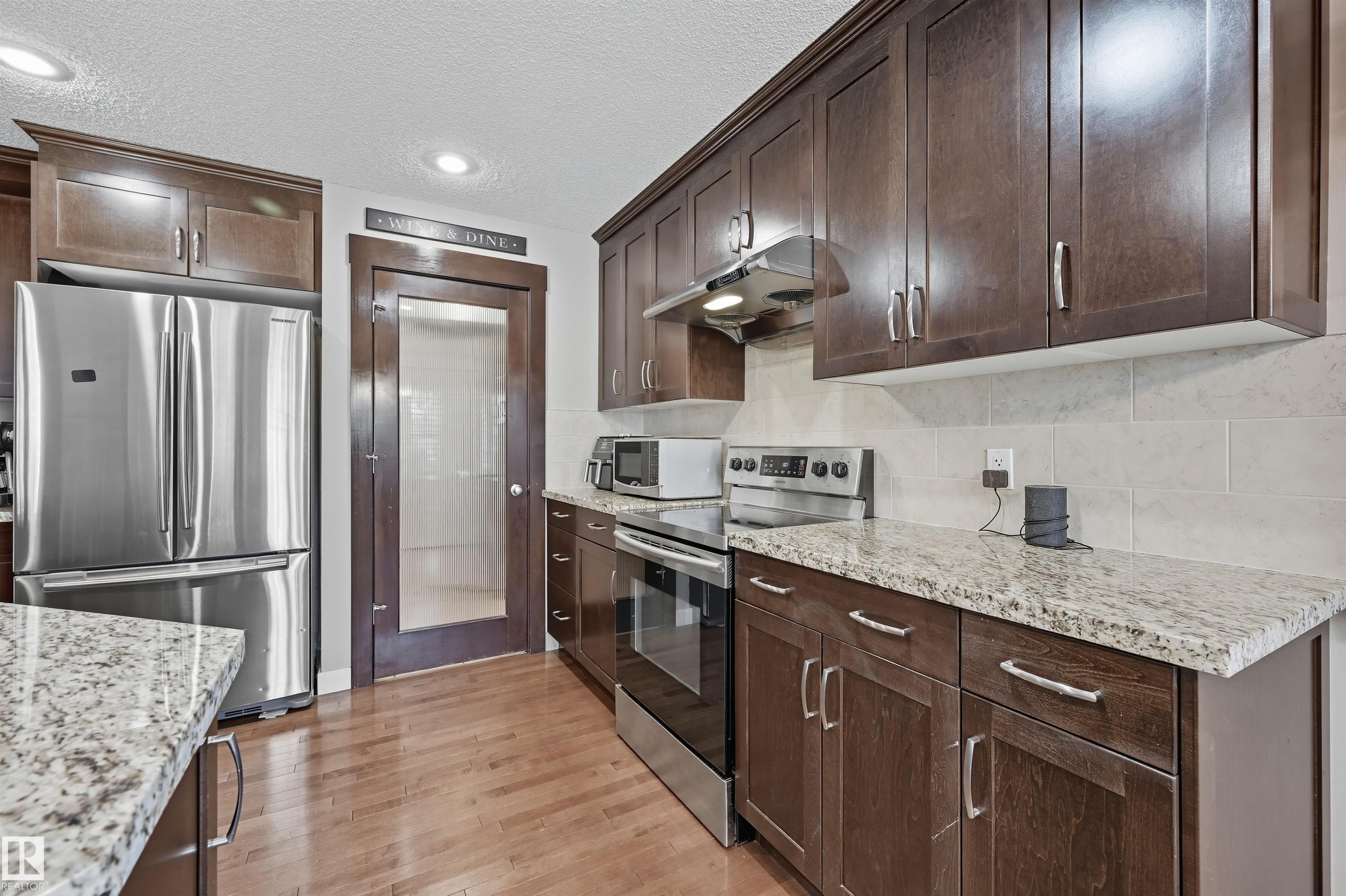 This 2-storey has everything on your checklist including a fabulous Ambleside location just steps to Dr. Margaret-Ann Armour School! Open concept plan w/ lots of natural light, ideal for those who love to entertain. Main floor flex rm can be used as a den or formal dining rm. Living rm located right off of kitchen & bright dining nook. Enjoy spacious kitchen w/ cabinets galore, stainless steel appliances & a W/I pantry leading to mudrm. Upper level has 3 spacious bdrms & bonus rm (all baths have granite counters & tile flooring). Sunny primary rm boasts a sitting area, walk-in closet plus double closets. Ensuite equipped w/ dual sinks, oversized soaker tub & separate shower. Extended deck for outdoor entertaining plus big yard! NEW BASEMENT development adds addtl living room, 2 more bdrms & bathrm roughed-in! Upgrades include newer carpet, AC, granite throughout, central vac, hardwood, water softener & more! Close to parks/pond, transit, shopping/Windermere Currents & easy access to the Henday