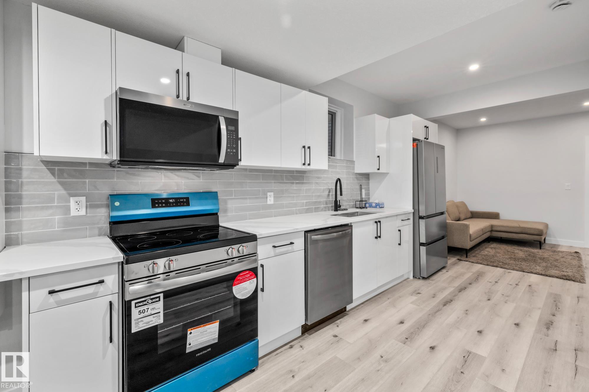 Why buy new when you can own a Pristine Keswick home with a BRAND NEW 2-bedroom legal basement suite with its own laundry. This 6-bedroom 4-bath 2-storey in southwest Edmonton offers versatility for extended family or rental help at a price point that stands out. The open to below design features dramatic 18 ft ceilings and huge natural light making a first impression you will not forget. The main floor includes a bedroom and full bath plus a sleek kitchen with quartz counters, high gloss cabinetry, wine rack and a walk-through pantry to the heated double garage. Upstairs offers 3 bedrooms including a spacious primary with spa-inspired ensuite plus a bonus room and laundry with sink and storage. The legal 2-bedroom suite includes a private side entrance, full kitchen, bath and its own laundry. Outside enjoy a west-facing yard with stamped concrete patio, pergola, deck, professional landscaping and window coverings already done. Walk to schools and enjoy quick access to shopping and amenities in Keswick.