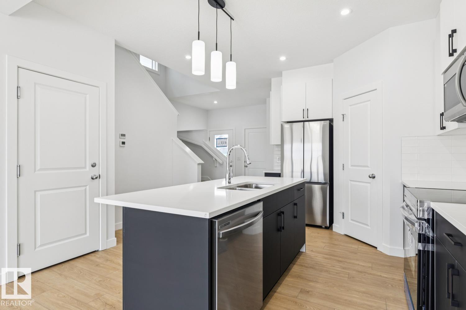 LEGAL BASEMENT SUITE BACKING GREENSPACE. Welcome to this beautifully crafted half duplex in the vibrant community of Alces. Offering over 2350 square ft of finished living space across the main & upper levels, this home is thoughtfully designed to deliver both comfort & versatility. It feat. a double attached garage, a 150-amp electrical panel, & a legal suite, making it an excellent mortgage helper or ideal for multi-generational living. The open-concept main floor welcomes you with 9-ft ceilings & stylish vinyl flooring throughout. A bright, modern kitchen overlooks the spacious dining & living areas, creating an ideal space for everyday living, family gatherings, & entertaining. Upstairs, you’ll find 3 generously sized bedrms, a bonus rm, upper-floor laundry, & 2.5 baths. The basement suite includes an additional bedrm & full bathrm, bringing the homes total to 4 bedrms & 4 bathrms. Currently renting for $1,200 per month, the suite provides immediate income potential & long-term financial flexibility.