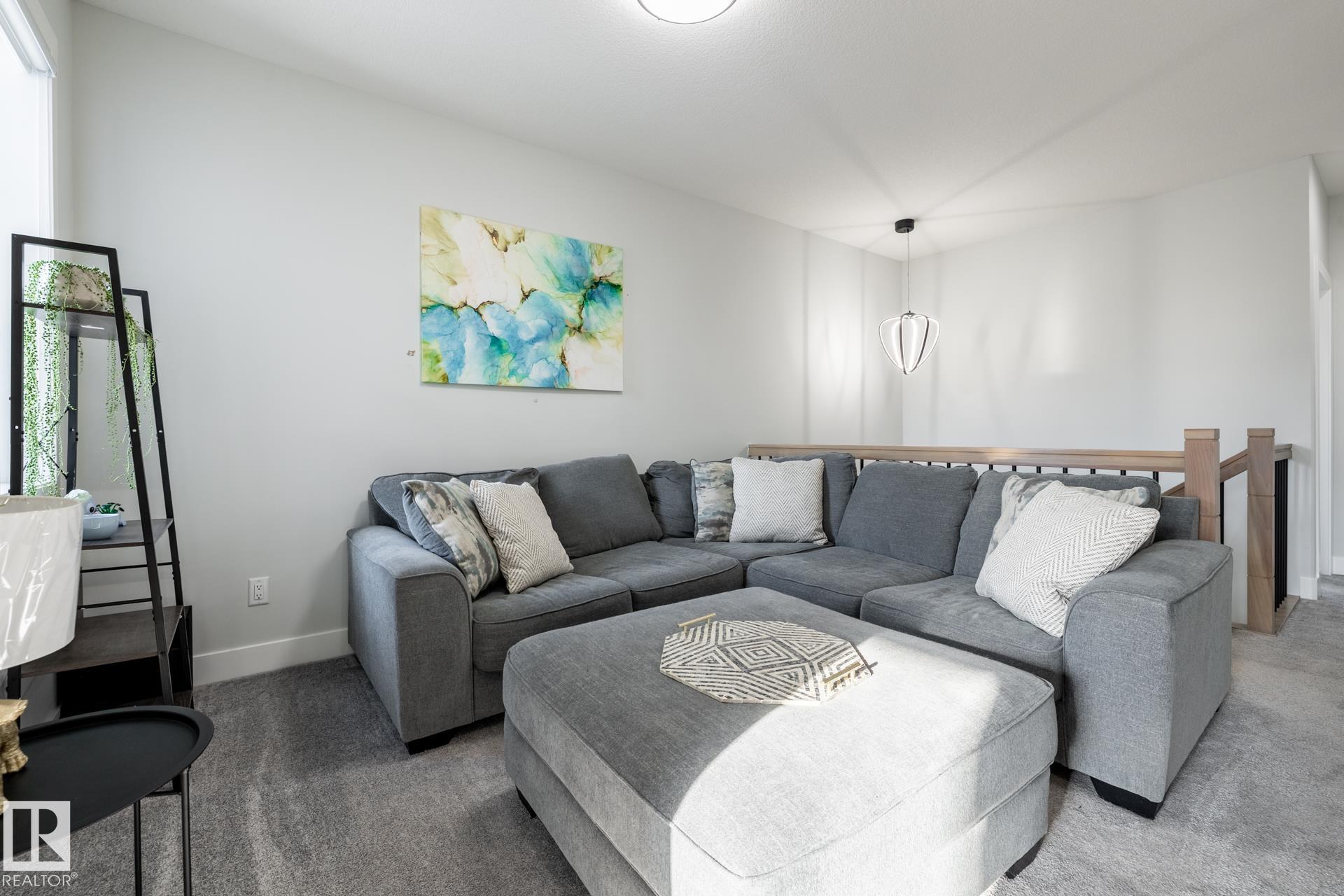Welcome to this beautifully maintained two-storey home built in 2021, located in the desirable community of Uplands. Offering a double attached garage and a modern, functional layout, this move-in-ready property is designed for today’s lifestyle. The bright and open main floor features a living room highlighted by a stylish tiled fireplace, 9-foot ceilings, and large windows that flood the space with natural light. The gourmet kitchen is a true standout, complete with quartz countertops, extended cabinetry, a built-in wine rack, and ample workspace—perfect for both everyday living and entertaining. Upstairs, you’ll find three spacious bedrooms, two full bathrooms, and a versatile bonus room ideal for a home office, playroom, or media space. Conveniently located close to schools, parks, and everyday amenities, this home offers exceptional value in a family-friendly neighbourhood. A fantastic opportunity to own a modern, move-in-ready home in Uplands.