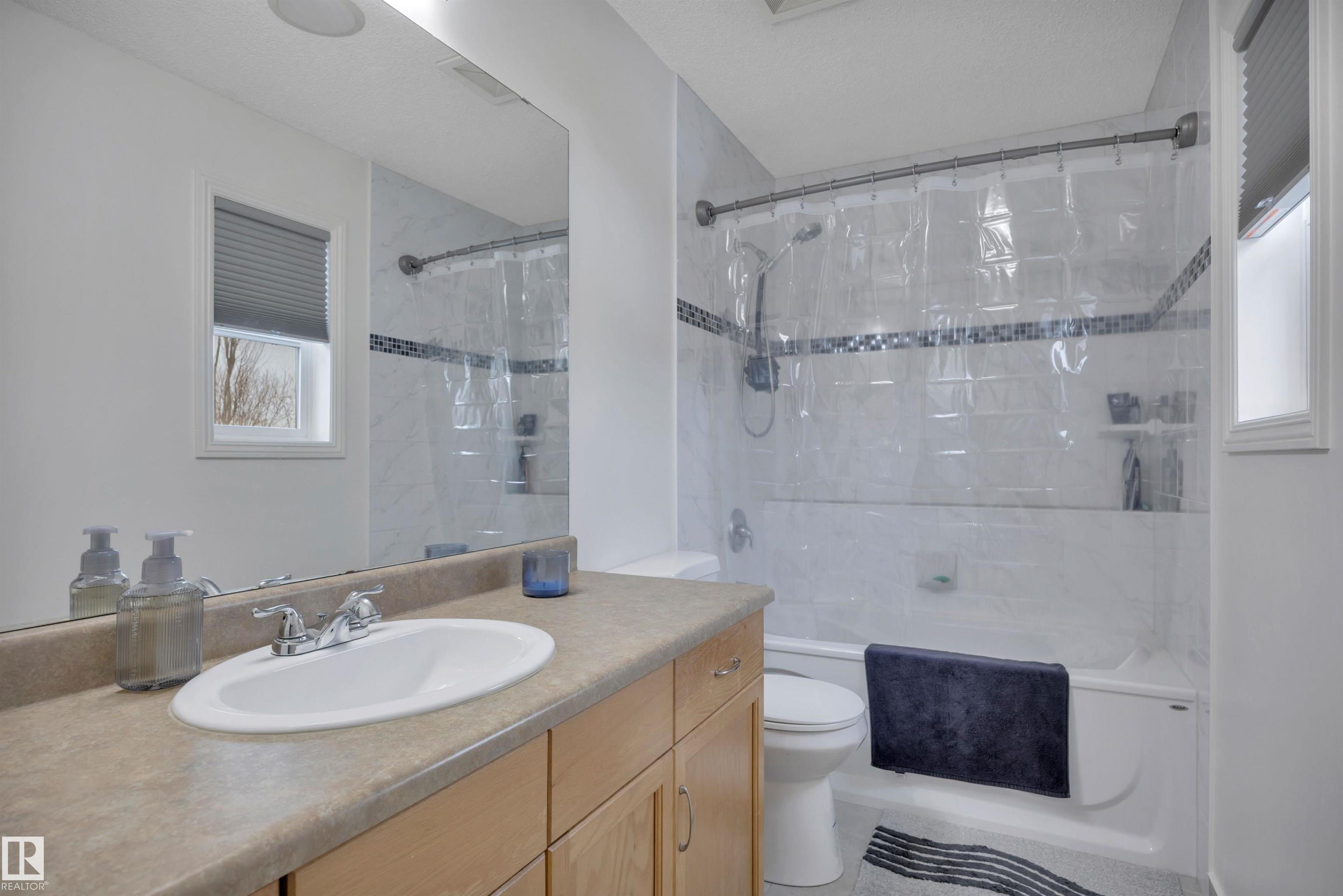 Step into this well-kept Wildrose home where an open den welcomes you at the front door, featuring a striking two-sided fireplace shared with the main floor living room. The open-concept kitchen and dining area flow seamlessly, creating a warm and functional space for everyday living and entertaining. Upstairs, you’re greeted by a full bathroom and an open office with a built-in workspace, perfect for working from home. Three generous bedrooms complete the upper level, including a spacious primary suite with an updated four-piece ensuite. Newer carpet, Vinyl plank & monochromatic paint throughout add a fresh, modern feel. The fully developed basement offers a large recreation room, an additional bedroom, a three-piece bathroom, and a convenient laundry nook. Recent upgrades include shingles (3 years), hot water tank, furnace, and air conditioning (7 years). Outside, enjoy a cozy backyard with a gazebo-covered patio and a lower patio area. Thoughtfully updated and move-in ready, simply unpack and enjoy.
