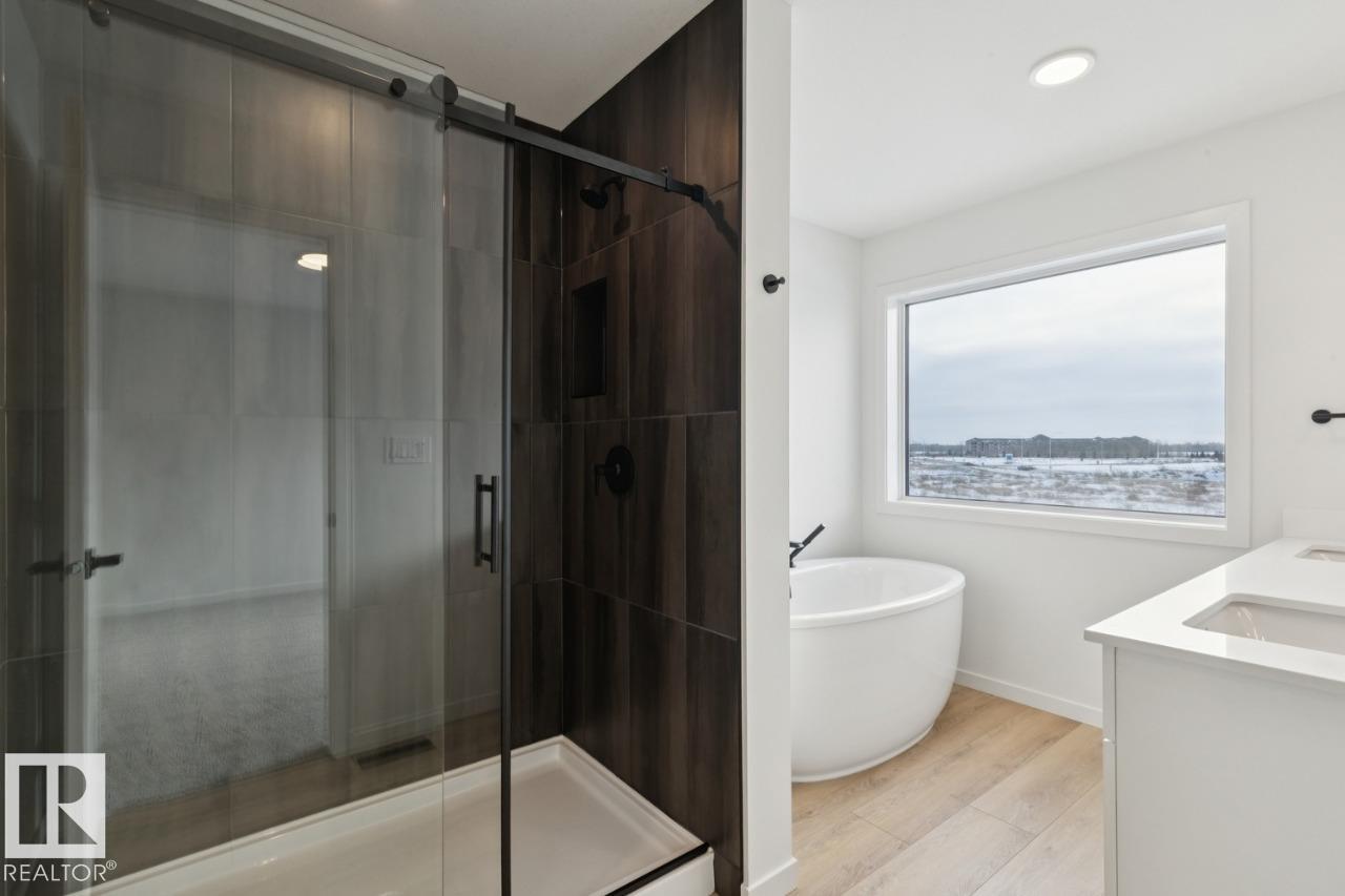IMMEDIATE POSSESSION AVAILABLE WITH FULLY FINISHED LEGAL SUITE! Welcome to the Entertain Impression 20 by Cantiro Homes! This thoughtfully curated home is made for those who love to host and aren’t afraid to impress. The open-concept main floor showcases an oversized 10ft kitchen island, walk-in pantry, upgraded kitchen appliance package, and a striking electric fireplace, all framed by modern finishes and elegant glass panel railings. Upstairs, you’ll find 3 spacious bedrooms, including a primary retreat complete with a spa-inspired ensuite, large soaker tub, tiled shower with sliding glass door and walk-in closet — your private escape at the end of the day. What truly sets this home apart is the fully finished legal basement suite with separate side entry and a full kitchen and laundry appliance package, offering an incredible opportunity to provide comfortable space for extended family. GREENSPACE BACKNG LOT, upper laundry, upgraded colorboard.
