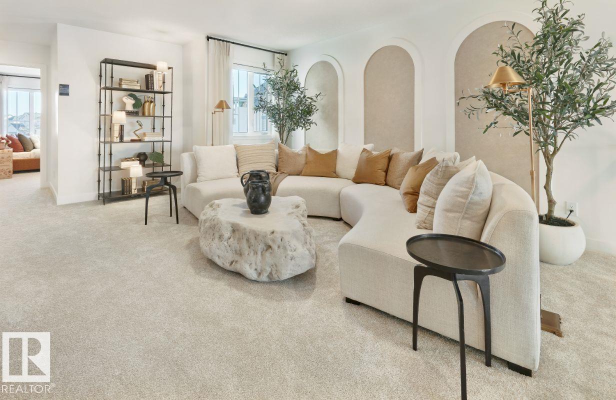 Step into the Connery 24 by Jayman BUILT, a breathtaking showhome offering over 2,000 sq. ft. of thoughtfully designed living space with a double attached garage and walkout basement. Featuring triple pane windows, solar panels, and tankless hot water! A spacious foyer opens to a dramatic great room with open-to-above design, creating a bright and impressive main living area that flows into the dining space and kitchen. The kitchen features quartz countertops, a large island, stainless steel appliances, and designer cabinetry. A main floor bedroom and full bath add flexibility. Upstairs, three bedrooms include a generous primary suite with walk-in closet and luxurious five-piece ensuite, plus additional bathrooms for convenience. The fully developed walkout basement includes a legal two-bedroom suite, providing excellent additional living space within this beautifully finished home.