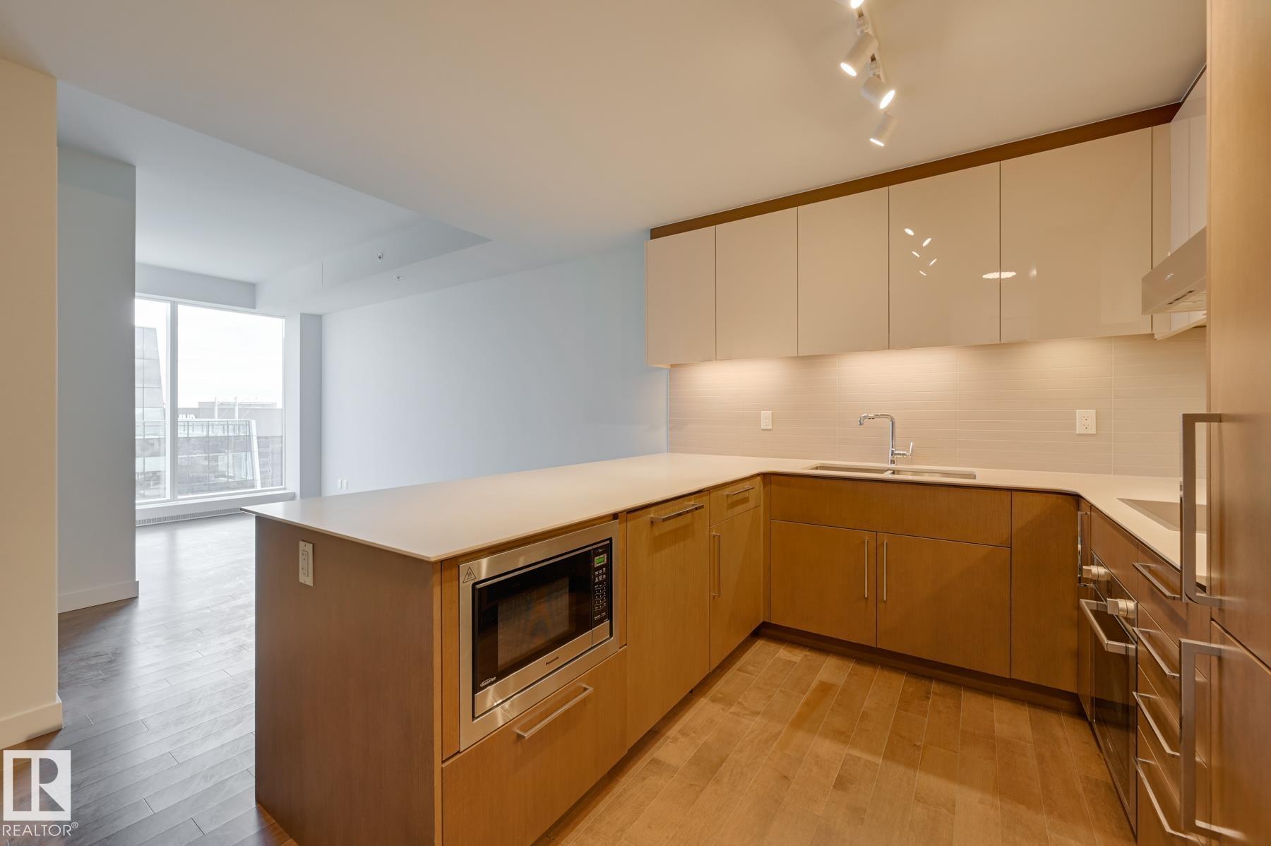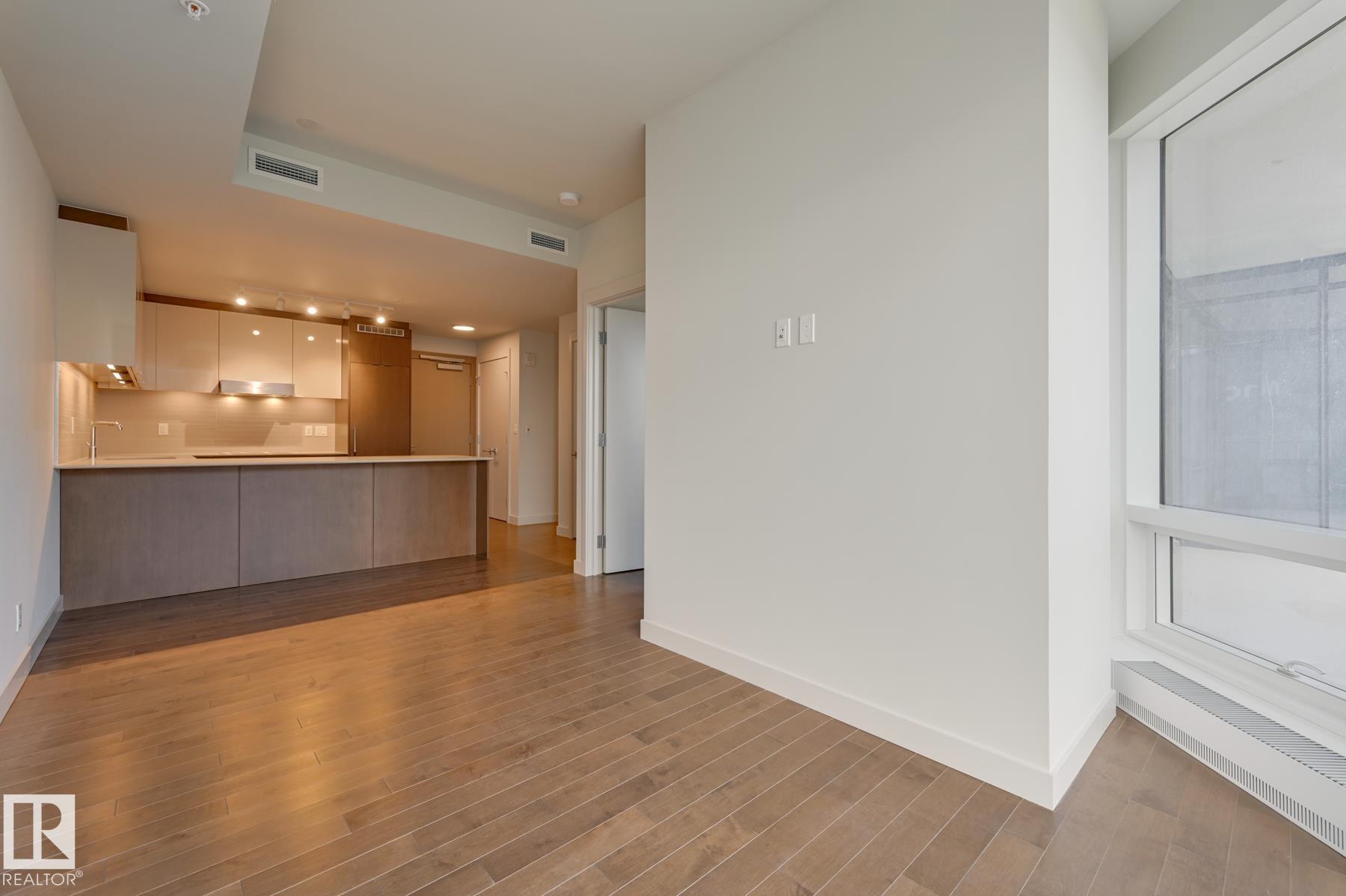 Beautiful 2-Bedroom, 2 Full Bathroom suite available at the Legends Private Residences. Favorite features include a clean and linear layout, spacious peninsula kitchen with additional span of upper cabinets, fully integrated appliances, and ceaserstone island with seating. Modern luxuries include floor-to-ceiling windows, neutral roller shades, natural hardwood floors, tile surfaces in both bathrooms, full temperature control with a/c, and convenient in-suite laundry. The property offers scenic city views from an inviting East facing balcony. ICE District’s central location encourages a true walk-indoors experience with pedway access to Rogers Place, the financial core, groceries, public transit + so much more. World-class JW Marriott shared facilities include spa with indoor pool + steam areas, ARCHETYPE fitness facility, 24/7 concierge/security presences, valet and numerous dining choices at your doorstep!