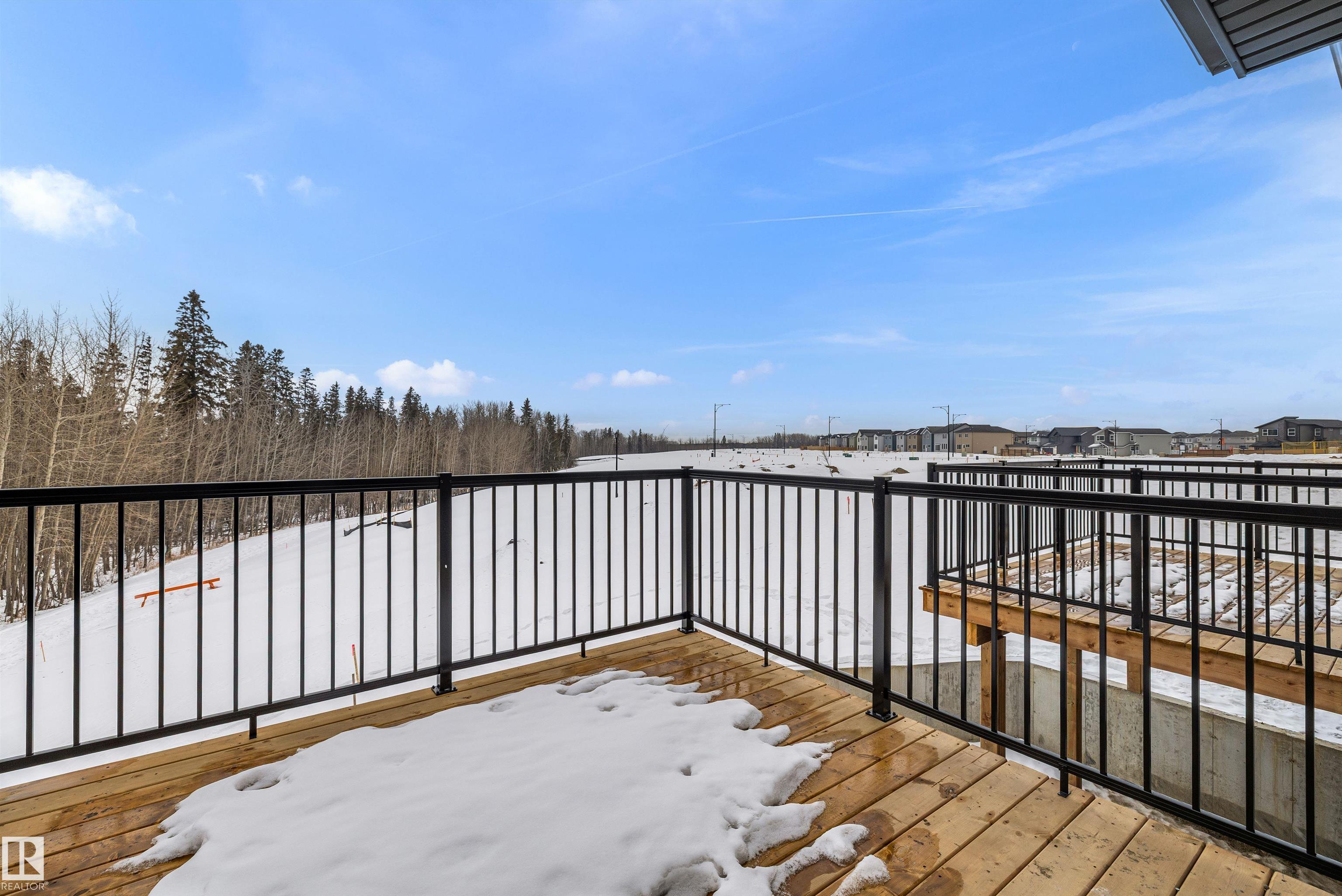 Built by Sterling Homes, this beautifully designed duplex in Kinglet sits on a walk-out lot with rare backyard potential in a peaceful, nature-rich community. Triple-pane windows and 9’ ceilings brighten the open-concept main floor, where a welcoming foyer leads into a stylish kitchen with quartz countertops, a central island with seating, upgraded cabinetry, chimney hood fan, full-height tile backsplash, and built-in microwave. The great room is filled with natural light from large rear windows, while sliding patio doors off the dining area open to a deck with serene views, perfect for morning coffee or evening unwinding. Upstairs, the primary suite offers a walk-in closet and 4-piece ensuite with double sinks and tub/shower. Two more bedrooms, a full bath, and upper-floor laundry complete this thoughtfully designed home.