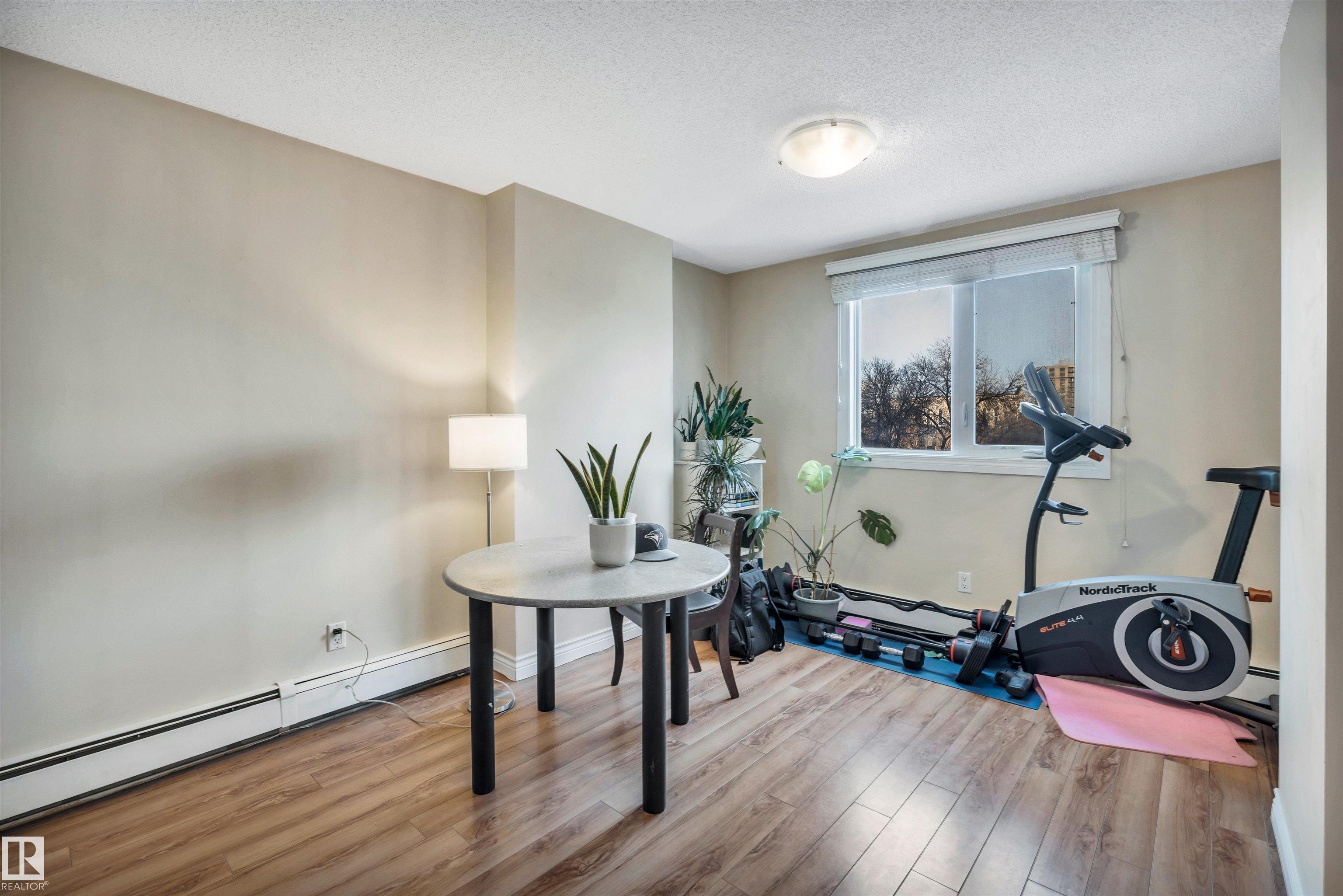Nestled between downtown and the river valley this renovated 2-bedroom, 2 bathroom condominium with an optional tandem underground parking stall for under 200k will be an instant hit for savvy buyers. The located is exceptional on a quiet tree lined street 1 block from the river valley, 1 block to the LRT station, 2 blocks to Jasper Av to all walkable amenities. This corner unit offers 1066sqft, large open concept living space, the kitchen has been upgraded, laminate and tile floors, renovated primary ensuite, full-size laundry in suite and large west facing balcony overlooking the street. The Tretheway building offers a games room, exercise room and sauna.