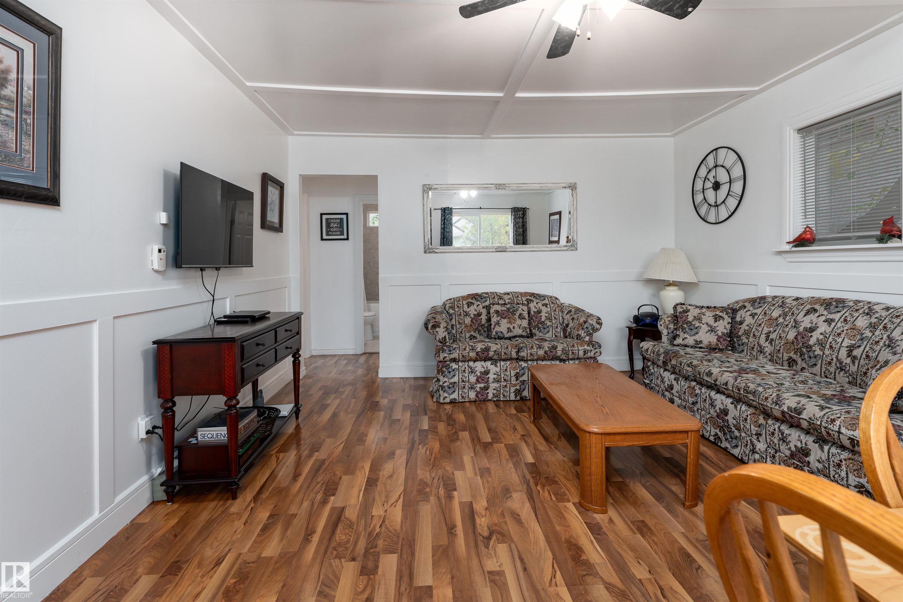 Welcome to this charming 740 sq ft bungalow packed with potential and ideally located in the heart of Edmonton. Step inside to discover hardwood floors and bright white walls flowing through a spacious living and dining room, perfect for relaxing and entertaining. The kitchen features warm wood cabinets that extend to the ceiling, ceramic tile floors, and plenty of storage. The cozy primary bedroom offers natural light and ample closet space, while a second bedroom and 4-piece bathroom complete the main floor. This home boasts a long list of recent improvements including newer ROOF, WINDOWS, 100-AMP ELECTRICAL PANEL and FURNACE. Outside, enjoy a large front and backyard that is perfect for kids, pets, or summer gatherings, with fenced privacy and back lane access with a SINGLE DETACHED GARAGE. All this within minutes of NAIT, Royal Alexandra Hospital, Kingsway Mall, and Downtown views. A rare opportunity to create, invest, or settle in this beautiful home!