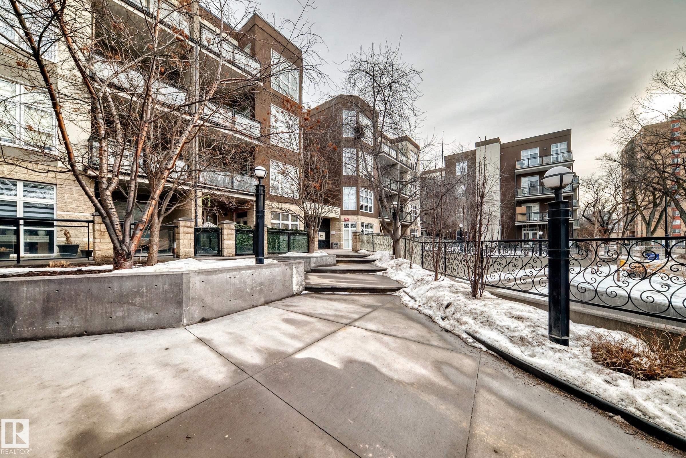Welcome to Glenora Gates, ideally located in the sought-after community of Westmount. This private corner unit features a west-facing balcony, offering exceptional privacy and space! The open-concept floor plan showcases a chic, modern design with a spacious living area that easily accommodates a home office. Chefs kitchen is ideal for entertaining, complete with a large island and ample cabinet space. The Primary bedroom is generously sized & accommodates a king-size bed. Additional highlights include in-suite laundry, one heated underground parking stall, private storage & secure building access. Visitor parking also available for added convenience. Location is a 10/10 minutes from the Brewery District, LRT station, dining, shopping, Grant MacEwan and the river valley. Minutes away from 124 ST, one of Edmonton's most vibrant areas, home to boutiques, cafes and the popular farmers market. Pet Friendly! Quick access to elevator & courtyard, this condo offers the the perfect blend of style & convenience!