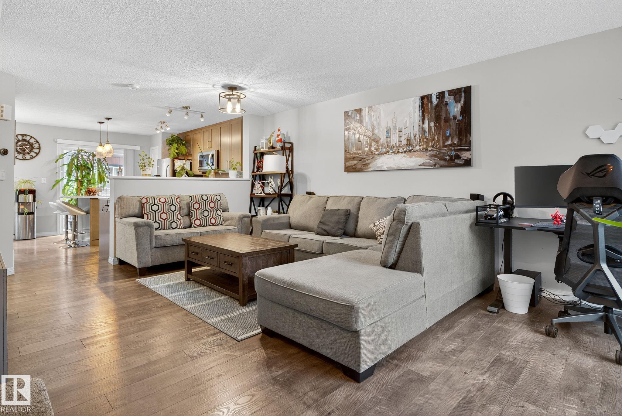 PRE-INSPECTED and move-in ready! This beautifully maintained 3-bedroom, 2.5-bath townhome offers low condo fees and a double attached garage, rare finds in one package. The open-concept main floor is bright and welcoming, featuring upgraded lighting and a modern kitchen with island seating and sleek finishes that flow seamlessly into the dining and living areas. Step outside to your private patio perfect for morning coffee or summer evenings. Upstairs, you’ll find three spacious bedrooms, a full bath, and a private primary retreat complete with walk-in closet and 3-pc ensuite. The lower level includes laundry, storage, and direct garage access for everyday convenience. Ideally located near amenities and transit, this home truly checks every box.