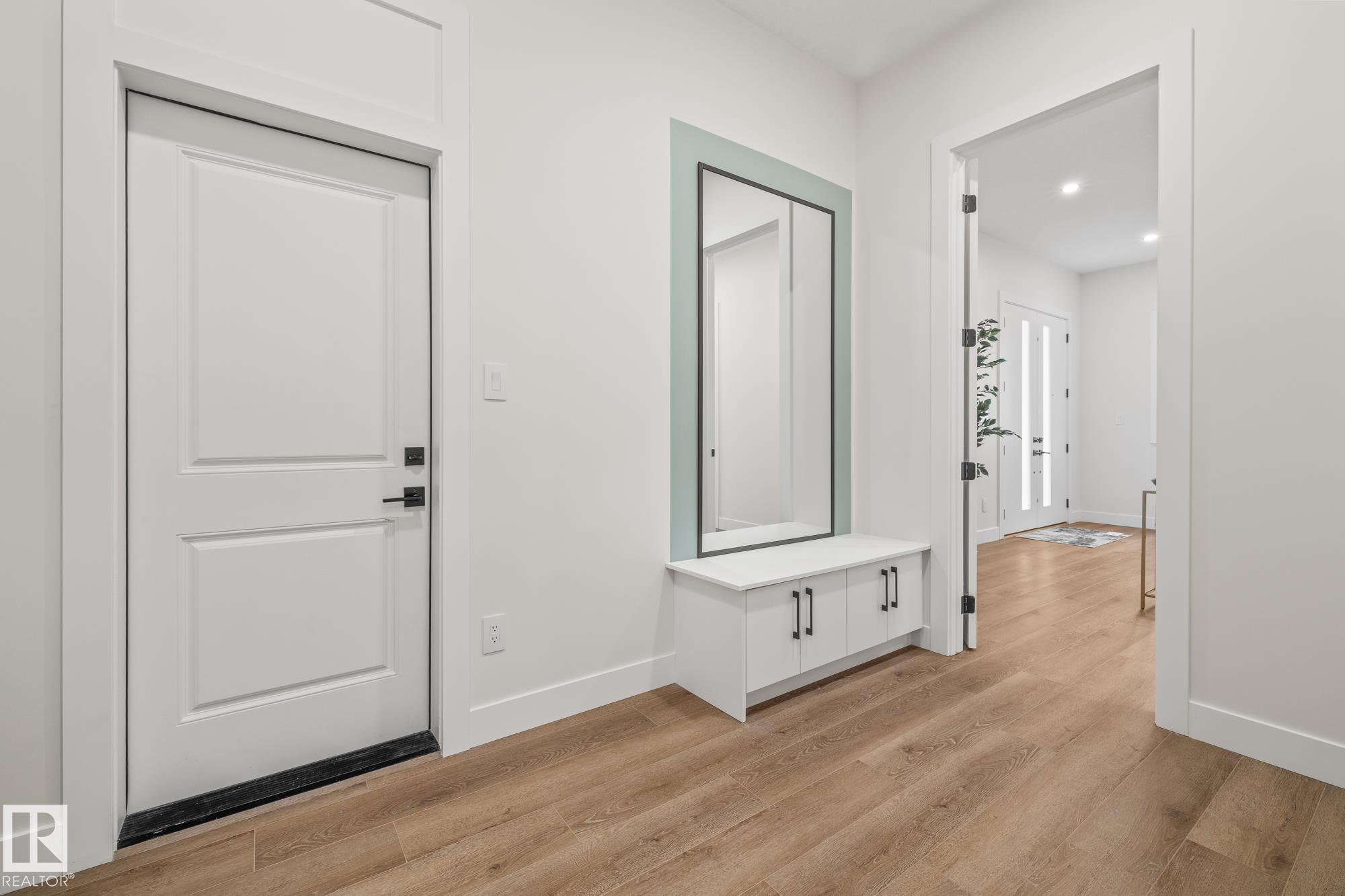 Luxury walkout backing a walkway to green space and a school in Southfork, Leduc. Set on a 40’ pocket lot, this 2,800+ sq ft home offers 4 beds and 4.5 baths with the rare perk of an ensuite for every bedroom, including a main-floor bedroom with ensuite for guests or multi-gen living. 10’ ceilings on the main, 9’ upstairs and in the 9’ walkout basement. Extended kitchen with butler’s pantry roughed-in for a future spice kitchen, plus a bright open-to-below living room with custom TV built-ins. Upstairs: 3 more ensuite bedrooms, bonus room, and laundry with sink. Upgrades include central A/C, built-in speakers, and hardwired cameras with a central kitchen display and more. Unfinished walkout basement ready for your plans. Heated garage with a pet wash and central floor drain - designed for day-to-day function.