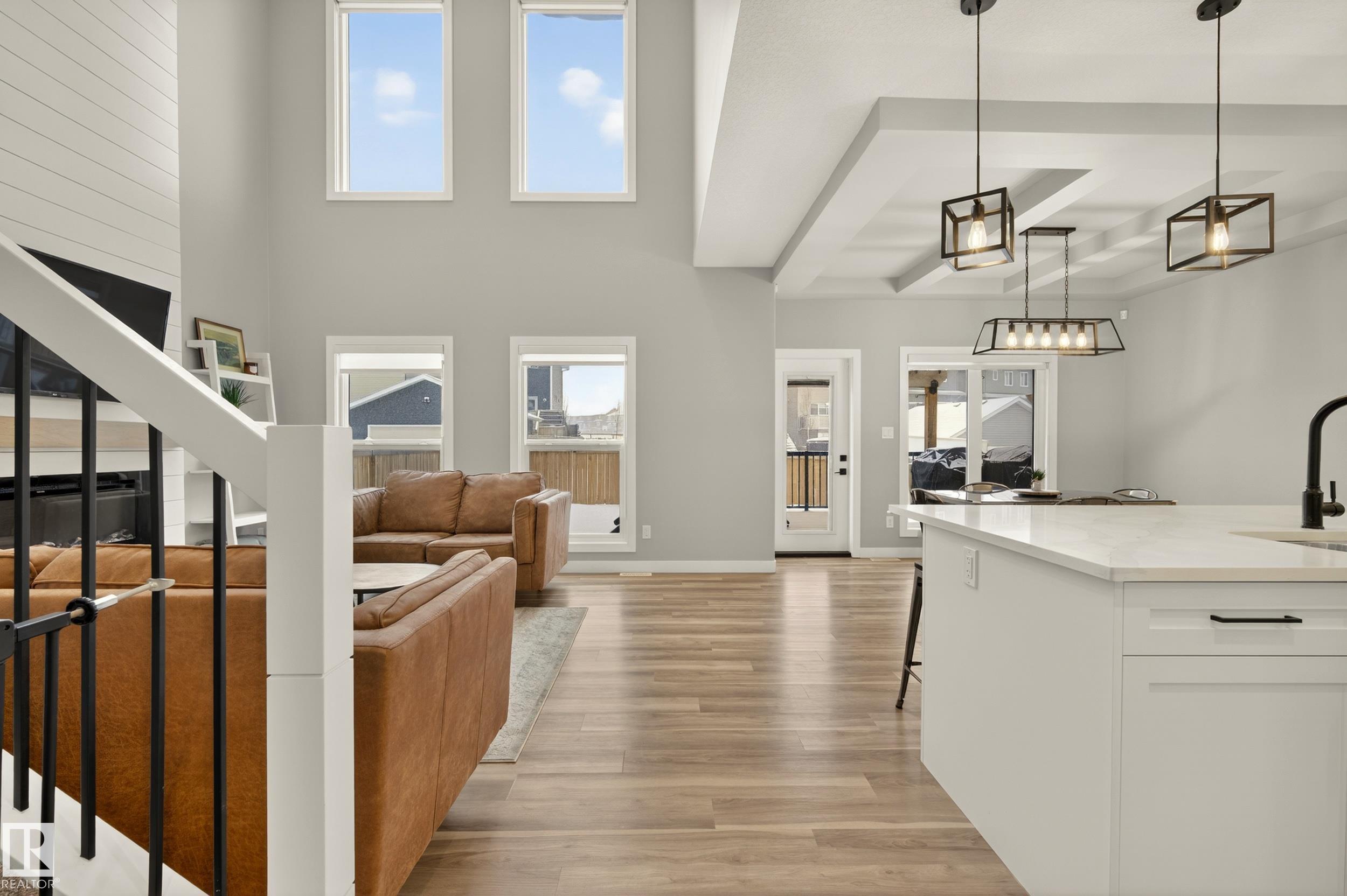 Elevated living in this gorgeous custom two-story perfectly positioned FRONTING THE PATHS to Big Lake. Offering over 2,208 sq ft of refined, open-concept space, the airy OPEN-TO-ABOVE layout and blonde longboard flooring (throughout main floor & bedrooms) create a seamless, modern feel. Chef-inspired kitchen showcases crisp white cabinetry, S/S appliances, walk-through pantry, an quartz island overlooking the sun swept dining area and great room. Step outside to a private, fully landscaped SOUTH FACING retreat featuring an oversized maintenance-free patio and pergola — ideal for summer evenings. Upstairs, an EXPANSIVE BONUS ROOM, full bath, and three spacious bedrooms await, including a serene primary suite with walk-in closet and spa-like 5-pc ensuite. HEATED EPOXY-FLOORED GARAGE, main-floor den, and central A/C complete this exceptional home. Moments from trails, golf, and quick city access make for a rare setting that blends Big Lake’s natural beauty with seamless access to Edmonton.