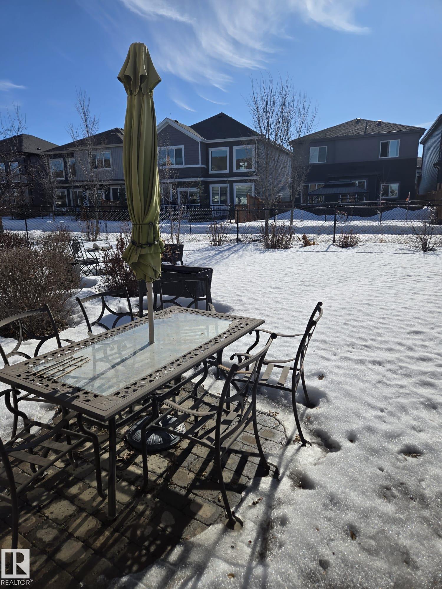 Beautifully upgraded half duplex in The Orchards at Summerside, backing onto a greenbelt with a south-facing backyard. Just under 1,400 sq. ft., featuring a bright kitchen with stainless steel appliances, large island, and brand-new micro hood fan. The open living and dining areas lead to a landscaped backyard with a stone patio, underground sprinklers, and a gas BBQ line. Upstairs offers a spacious primary bedroom with a walk-in closet and ensuite, two additional bedrooms, upstairs laundry, and a second full bath. Single attached garage with an extended driveway fits two vehicles. Great location near schools, parks, shopping, and easy access to Anthony Henday and Highway 2. Includes patio furniture and access to The Orchards Residents Association amenities.