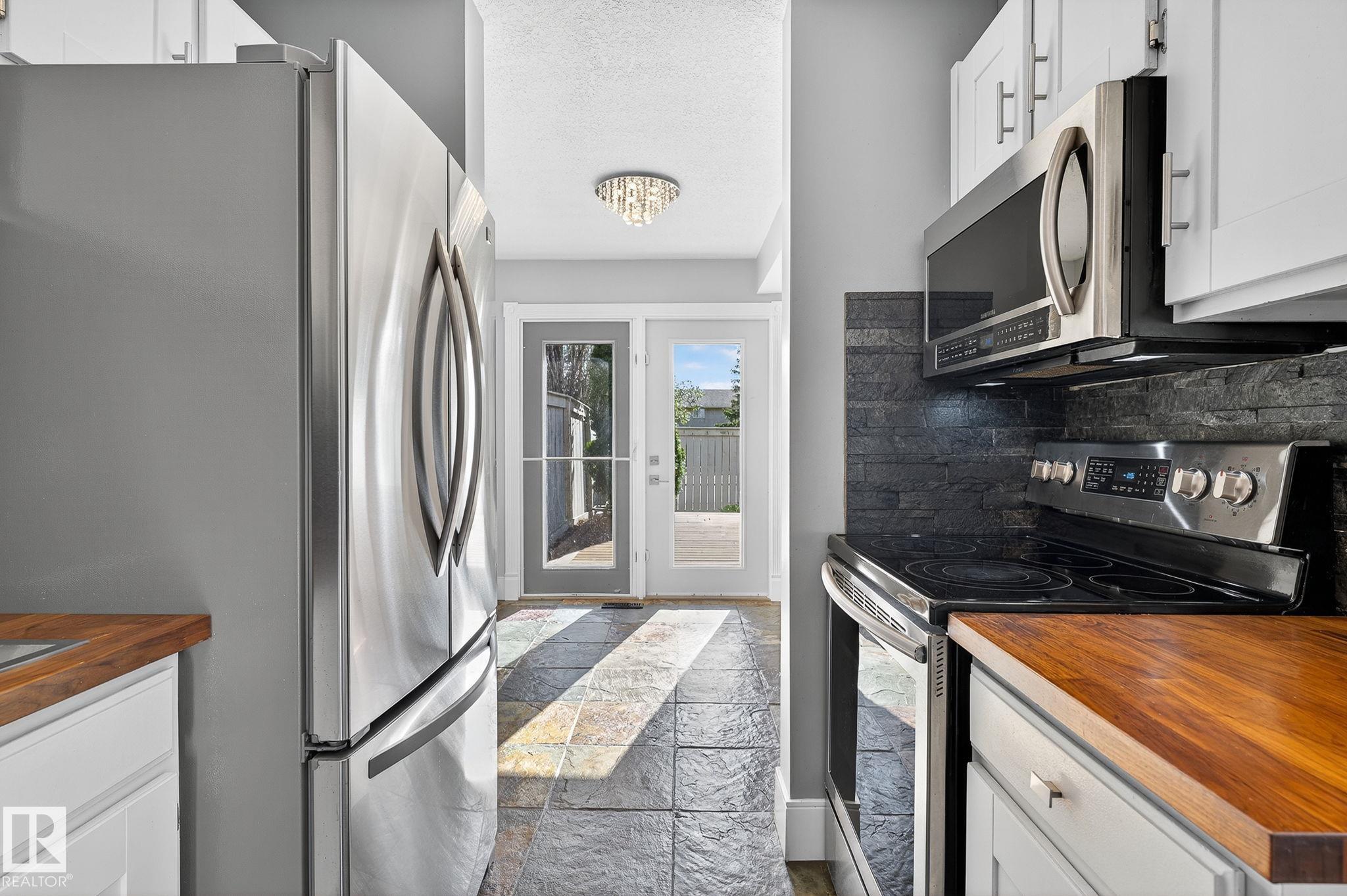 Welcome to this well-maintained and tastefully updated townhouse, nestled in one of West Edmonton’s most sought-after communities—Callingwood. Step inside to a bright and spacious living area, filled w/ natural light and enhanced by the home’s timeless character. A cozy dinette flows seamlessly to your private backyard patio. The modernized kitchen is a standout, featuring SS appliances and a striking stone backsplash, while a convenient half bath completes the main floor. Upstairs, retreat to your spacious primary suite, complete with a space for a charming nook area or home office & direct access to your private balcony. A secondary bedroom & 4pc bath complete the upper level. The basement offers an inviting entertaining space, finished laundry area, and plenty of storage. Outside, enjoy a fully landscaped backyard, spacious deck, and the convenience of a single attached garage. This townhouse beautifully blends character and updates, offering comfort & style in a prime West Edmonton location.