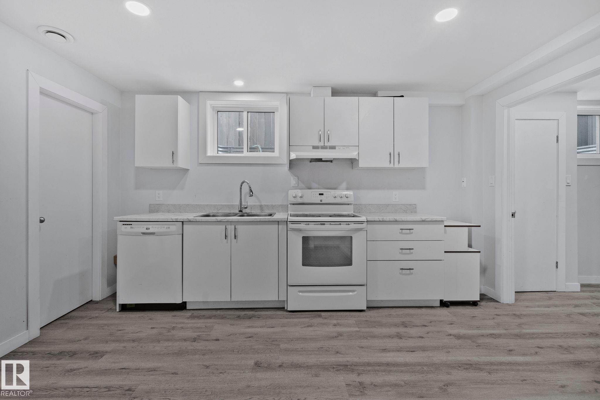 50X124 CORNER LOT in Beacon heights featuring a renovated bungalow with new shingles, floor, kitchen, new windows, bathrooms, 100amp electrical panel and more. Beautiful bungalow offers over 2000 sq ft of fully finished living space and an oversized double detached garage. Main floor boasts over 1000 sq ft and has 2 spacious bedrooms, new kitchen, a full bath and functional dining space. Basement has a separate entrance and is equipped with 2nd kitchen, 2 spacious bedrooms, and a full bath. Close proximity to schools, shopping, parks, Anthony Henday, and other amenities makes it perfect for first time buyers and investors. Oversize double detached garage offers plenty of space to park 2 SUVs and large lot offers room to park a RV and decent size backyard. Make this home yours today!