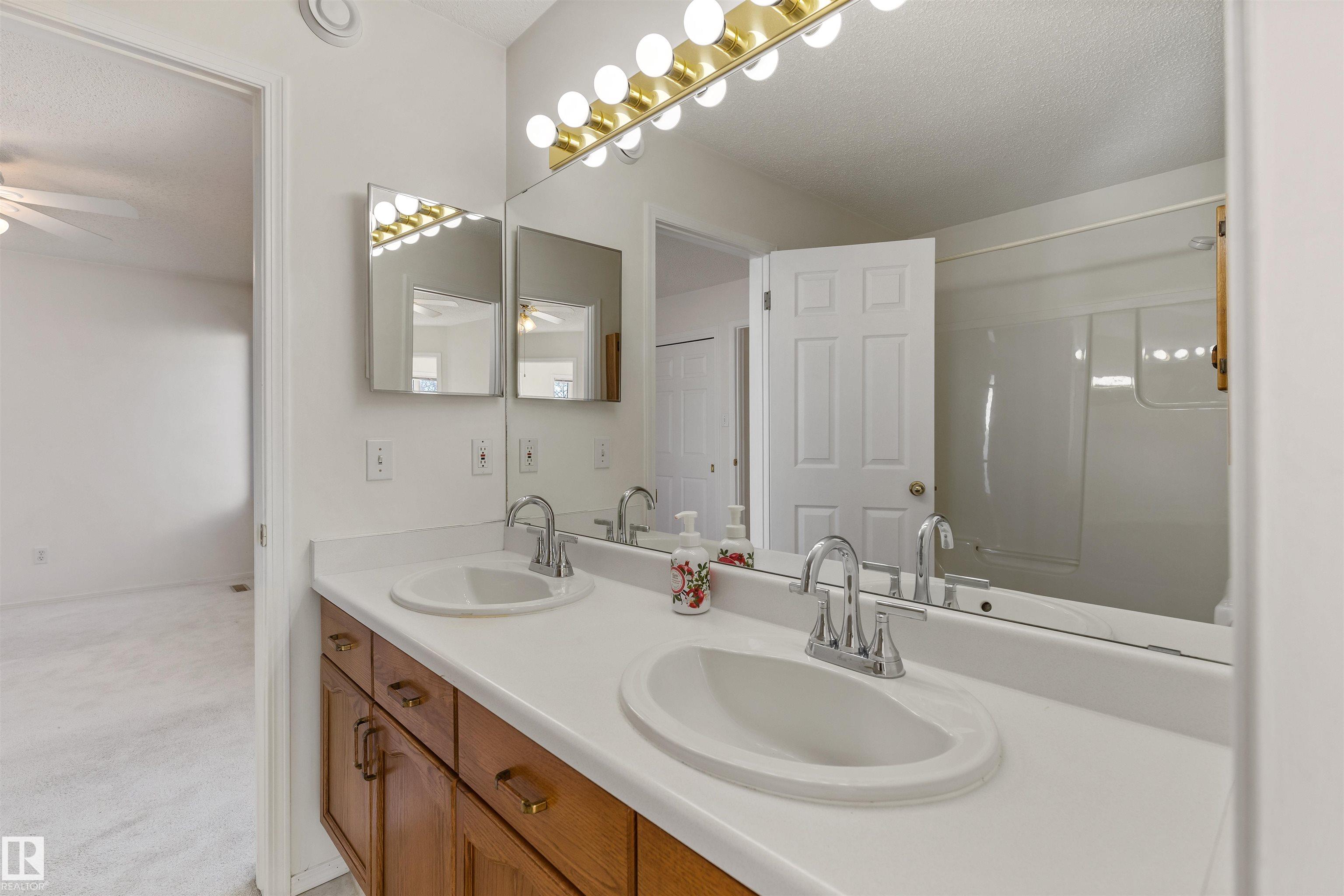 On a large pie shaped lot, discover this bi-level that is filled with natural light. The spacious entrance has a front closet and access to the FULLY FINISHED BASEMENT or up to the main floor. The living room and dining room are one large entertaining space with SOARING VAULTED CEILINGS. The centre of the home is the kitchen with newer fridge/stove/hood fan and it has a GENEROUS SIZED PANTRY. The breakfast nook is similar to a sunroom as it is full of windows and it has access out to the deck. Just off the kitchen is a powder bathroom. There are two main floor bedrooms, set up as his/hers sleeping with an en suite between them. A unique layout which also makes the smaller room work amazing as a home office. The basement is fully finished with two large bedrooms, a four piece bathroom, a large family room with a gas fireplace and wet bar plus loads of storage space under the front entrance. A double attached garage (19'8" x 22'2") completes this beautiful property!