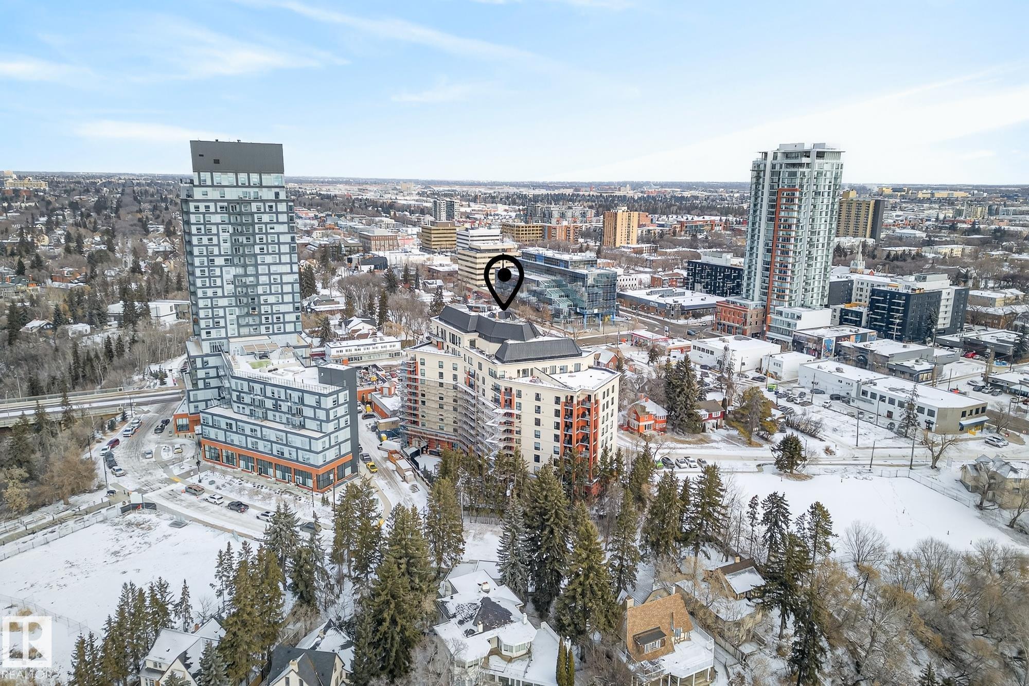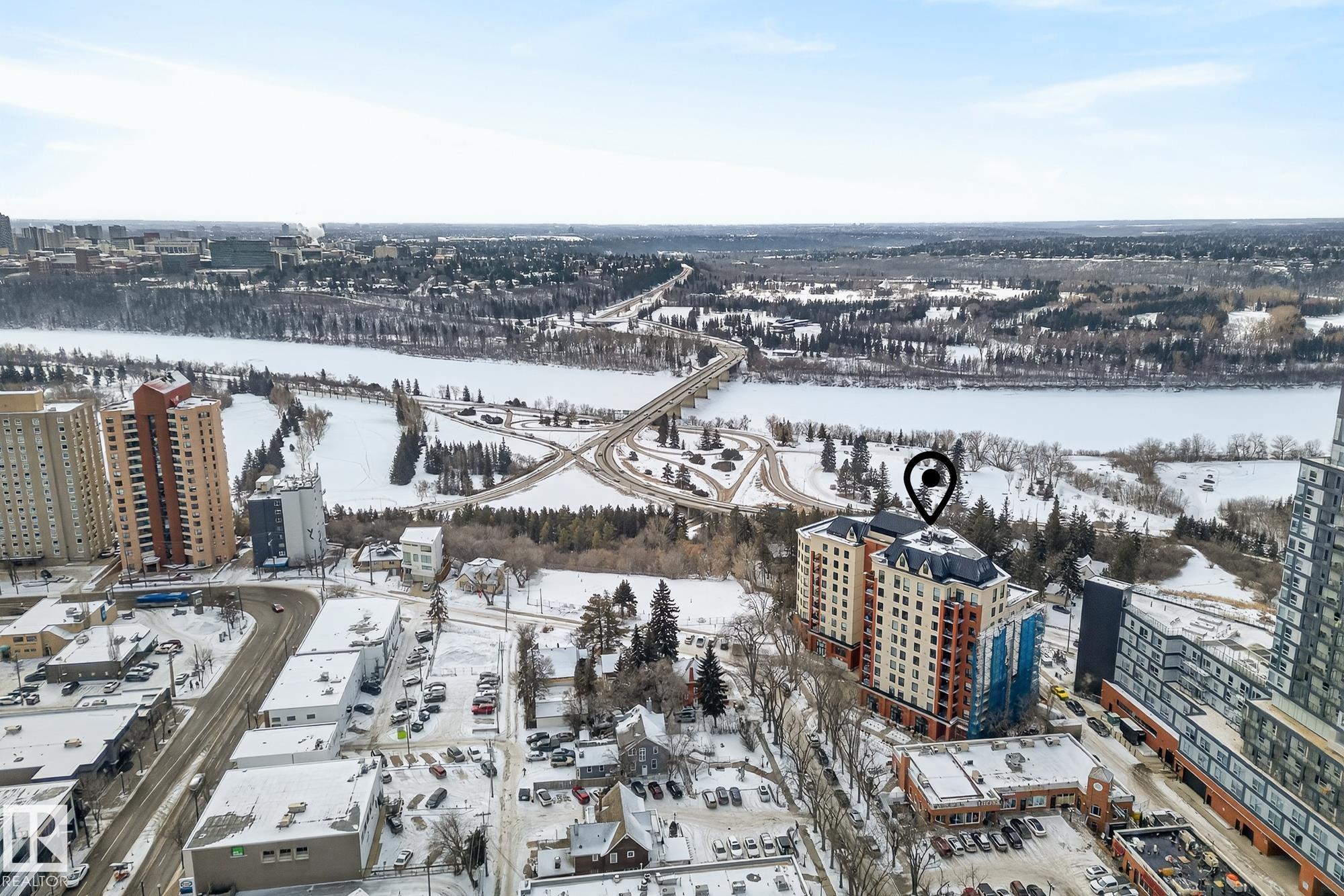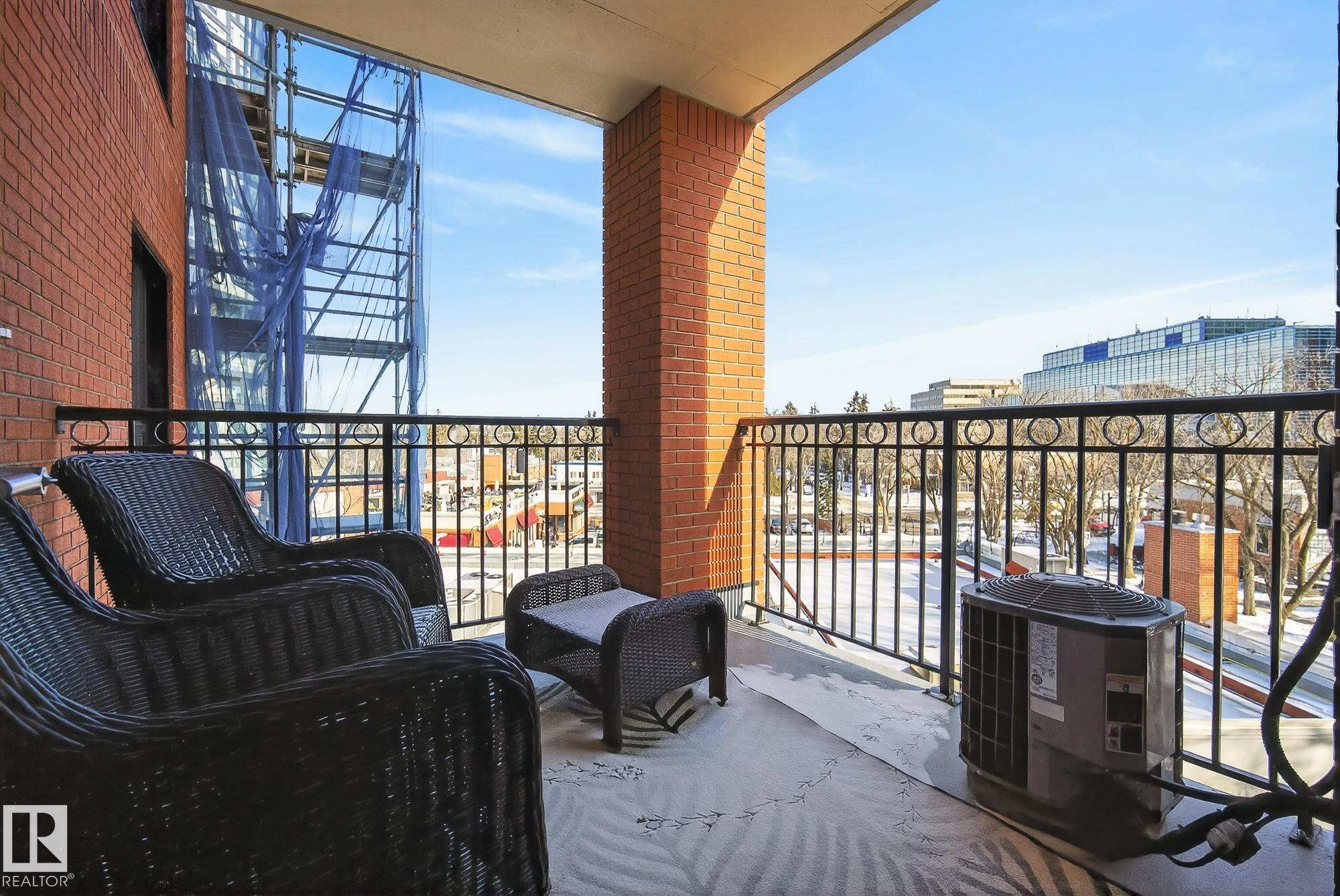 Steps from the River Valley and vibrant 124 Street, welcome to Properties on High Street—one of Edmonton’s most sought-after downtown condo buildings. This bright and spacious 1,380 sq. ft. east-facing corner unit offers 2 bedrooms and 2 bathrooms with beautiful views of tree-lined streets and the downtown skyline. Large windows fill the home with natural light, complementing the 9 ft. ceilings, hardwood and tile flooring, and cozy gas fireplace. The beautifully finished kitchen features granite countertops, classic white shaker cabinetry, and eat-up bar. The generous primary suite includes a spacious ensuite, while the second bedroom is ideal for guests or a home office. Enjoy central air conditioning and relaxing or entertaining on the private covered balcony with gas BBQ hookup. This well-managed, pet-friendly building offers an exercise room, courtyard patio, onsite caretaker, and heated underground parking. A rare opportunity to enjoy spacious downtown living in a premier location.