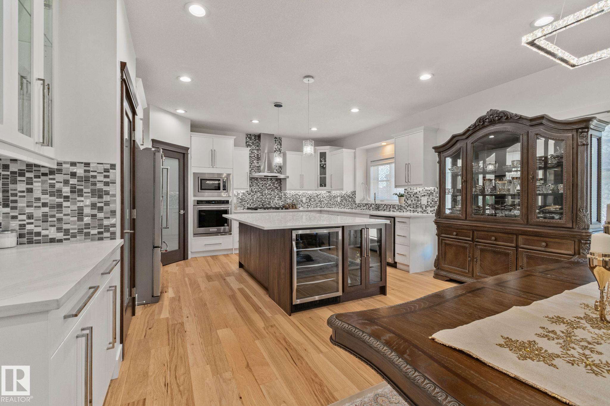 Step into one of Jagare Ridge’s most impressive homes, where prestige meets space and thoughtful design. Set on a walkout lot with golf course views, this home offers over 4600 sq ft of finished living space across three levels, including a walkout basement with a second kitchen and rear entrance. The moment you enter, the two-storey open foyer and glass railings fill the home with light and create an expansive, airy feel. Main-floor living areas feature two fireplaces, generous gathering spaces, and a dedicated office, while upstairs provides spacious bedrooms for the whole family. The basement is designed for entertainment, with tiered theatre-style seating in the media room, and added flexibility for older children or extended family. Step outside to the large sun deck and patio, and enjoy the premium surroundings steps from the golf course. A high-efficiency solar system reduces energy costs and adds lasting value, making this home both luxurious and smartly designed.