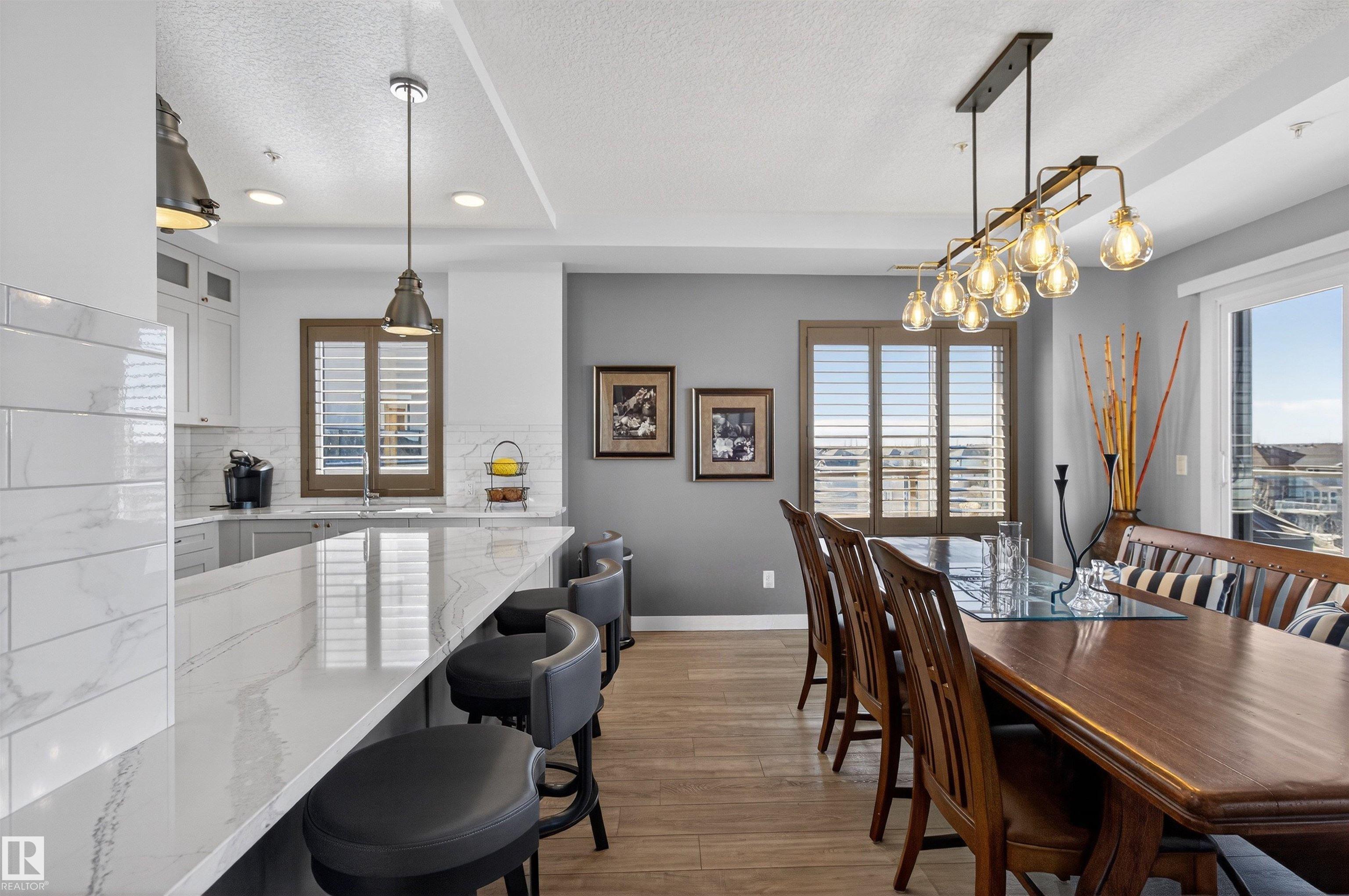 SOUTHWEST CORNER UNIT CONDO! VIEW OF THE POND & GREEN SPACE! This extensively upgraded executive style condo offers HIGH END QUALITY FINISHINGS throughout. Over $75K in professional upgrades! Featuring an open concept with 1515 sq ft and luxury vinyl plank flooring. You'll love the DREAM KITCHEN! Gorgeous Quartz countertops, beautiful cabinetry, pantry & all appliances including a 5 burner gas stove. Generous dining area and a large living room. Patio doors lead to the WRAP AROUND BALCONY to enjoy the views! Fire table and BBQ gas hookup. TWO LARGE BEDROOMS WITH WALK-IN CLOSETS & LUXURIOUS ENSUITES! DEN/OFFICE or potential 3rd bedroom. Powder room for guests. Convenient in-suite laundry. TWO UNDERGROUND TITLED PARKING STALLS PLUS STORAGE CAGE! Awesome fitness room is on the second level. Fabulous and secure building located in one of south Edmonton's most sought after communities. Close to major amenities, parks, transit & shopping. 18+ building. Enjoy the best of condo living at Lux At Upper Windermere!