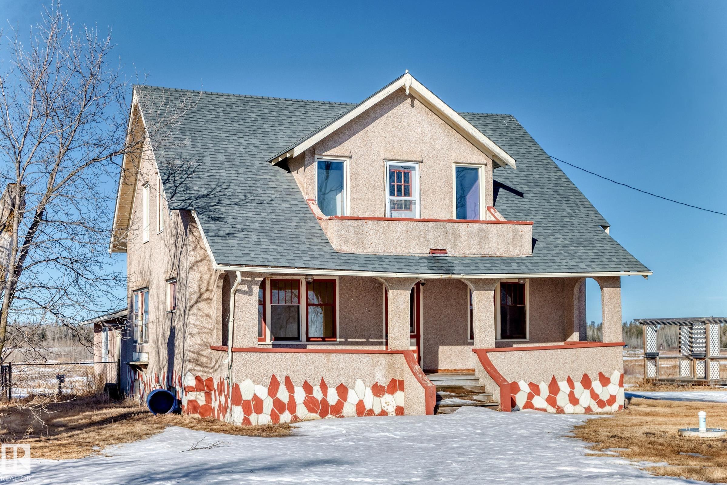 1 Acre Extremely High Visibility in Spruce Grove just south of Highway 16 Yellowhead Overpass & Jennifer Heil Way. Amazing opportunity very large frontage 176 ft parrallel to Jennifer Heil Way w the best exposure and great redeveloment potential for perhaps commercial site next to Highway 16/Yellowhead. Likewise at present this property could be ideal for home based business using home + garage as office etc. Situated on a 1-acre lot, this property offers flexibility also for buyers looking to move in and enjoy the classic farmhouse appeal with the option a home based business or redevelopment. With its location parallel to Jennifer Heil Way & many vacant acres of land adjacent west there is tremendous potential for rezoning to mixed-use or commercial or up zoning to R1. Ideal for entrepreneurs, investors, developers or those with vision. Possibilities could include a small office, bakery, or boutique-style business. This 1 Acre lot size gives investment appeal & redevelopment potential. Many options!!!