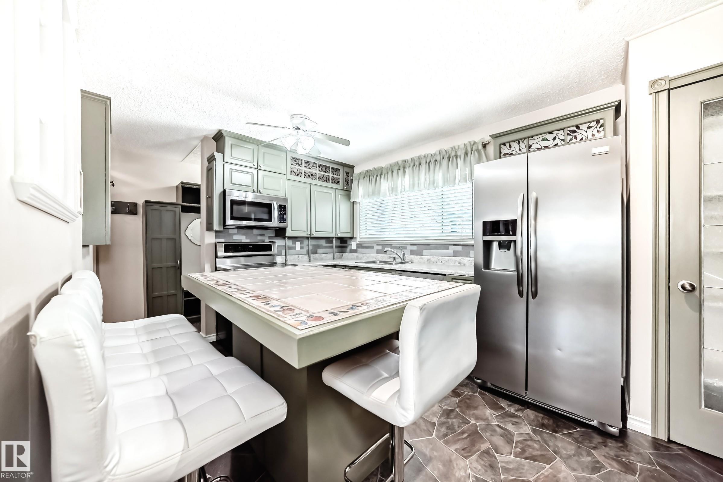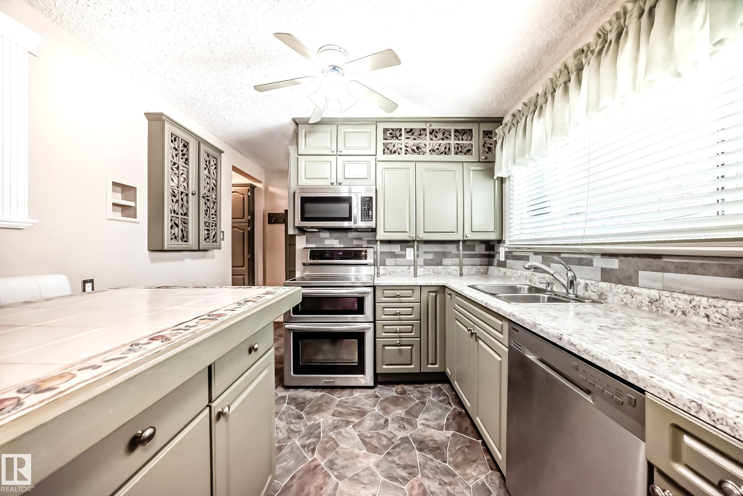 Just steps away from a park and schools this nicely upgraded move in ready end unit townhome with no condo fees comes with an oversized double garage with large driveway and a good sized back yard! Fully fenced. Recent upgrades include: carrier furnace 2017, carrier AC unit in 2024, Rheem 40 HWT in 2025, Energy efficient windows in 2016, upgraded shingles in 2016. Upgraded electrical to 100 amps. Fully insulated garage. The beautiful custom kitchen includes a large abundance of cabinets, a pantry, built-in desk, higher end stainless steel appliances and an island table with 5 chairs included. Hardwood flooring in the living room, front entrance & part of upstairs. At the back entrance you are greeted by a custom closet/bench unit. There are 3 bedrooms upstairs & an updated bathroom. Great custom features such as wall niches and cabinets throughout. The finished basement is perfect for entertaining and comes with a family room, custom bar under the stairs, lots of storage and a 3pce bathroom. Won't last!